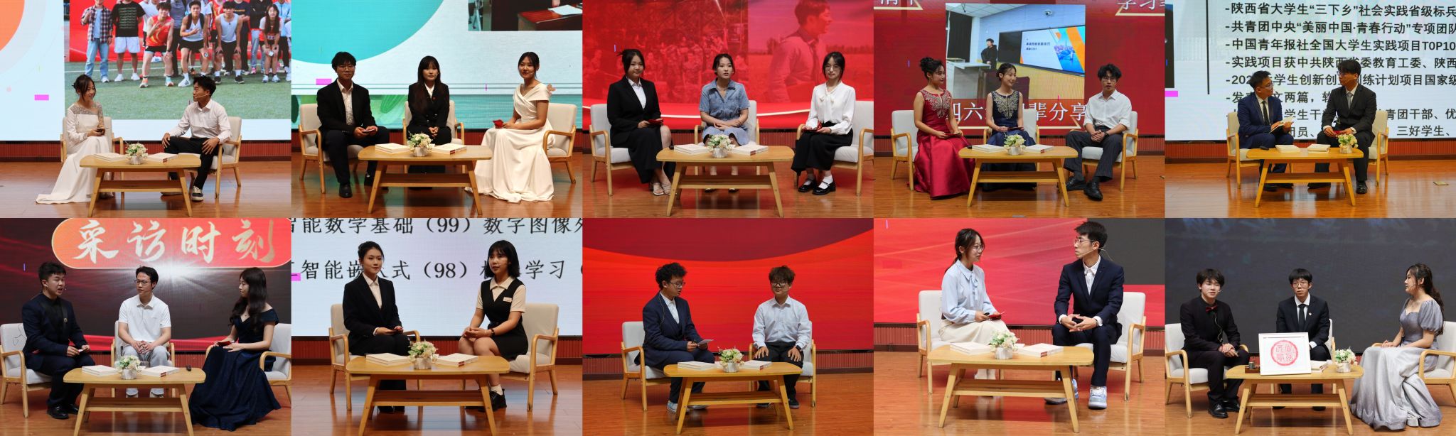 經(jīng)過初賽選拔,十支來自不同學院的隊伍晉級決賽。決賽以“主題引入+現(xiàn)場訪談”形式考察參賽選手的語言表達能力、邏輯思維能力和即興追問能力,賽前,向參賽選手發(fā)布了包括“優(yōu)秀教師榜樣”“優(yōu)秀學生榜樣”“優(yōu)秀實踐團隊”“學科競賽優(yōu)秀團隊”在內(nèi)的校園榜樣素材庫,選手可以自行確定訪談對象。