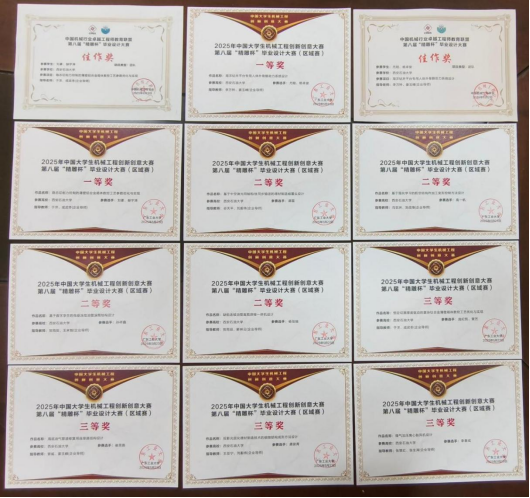 2025年6月1日-2日,由中國機械工程學會、中國機械行業(yè)卓越工程師教育聯(lián)盟主辦,廣東工業(yè)大學承辦的2025年中國大學生機械工程創(chuàng)新創(chuàng)意大賽“精雕杯”畢業(yè)設計全國總決賽在廣東工業(yè)大學順利舉行。大賽經過函評、區(qū)域賽、全國決賽等環(huán)節(jié)角逐,我校2件區(qū)域賽一等獎作品直通全國總決賽,并獲得全國佳作獎。本次大賽我校共提交作品20件,其中,獲一等獎2件,二等獎4件,三等獎4件。此次成績是我校學生參加此項賽事以來歷史最好成績。