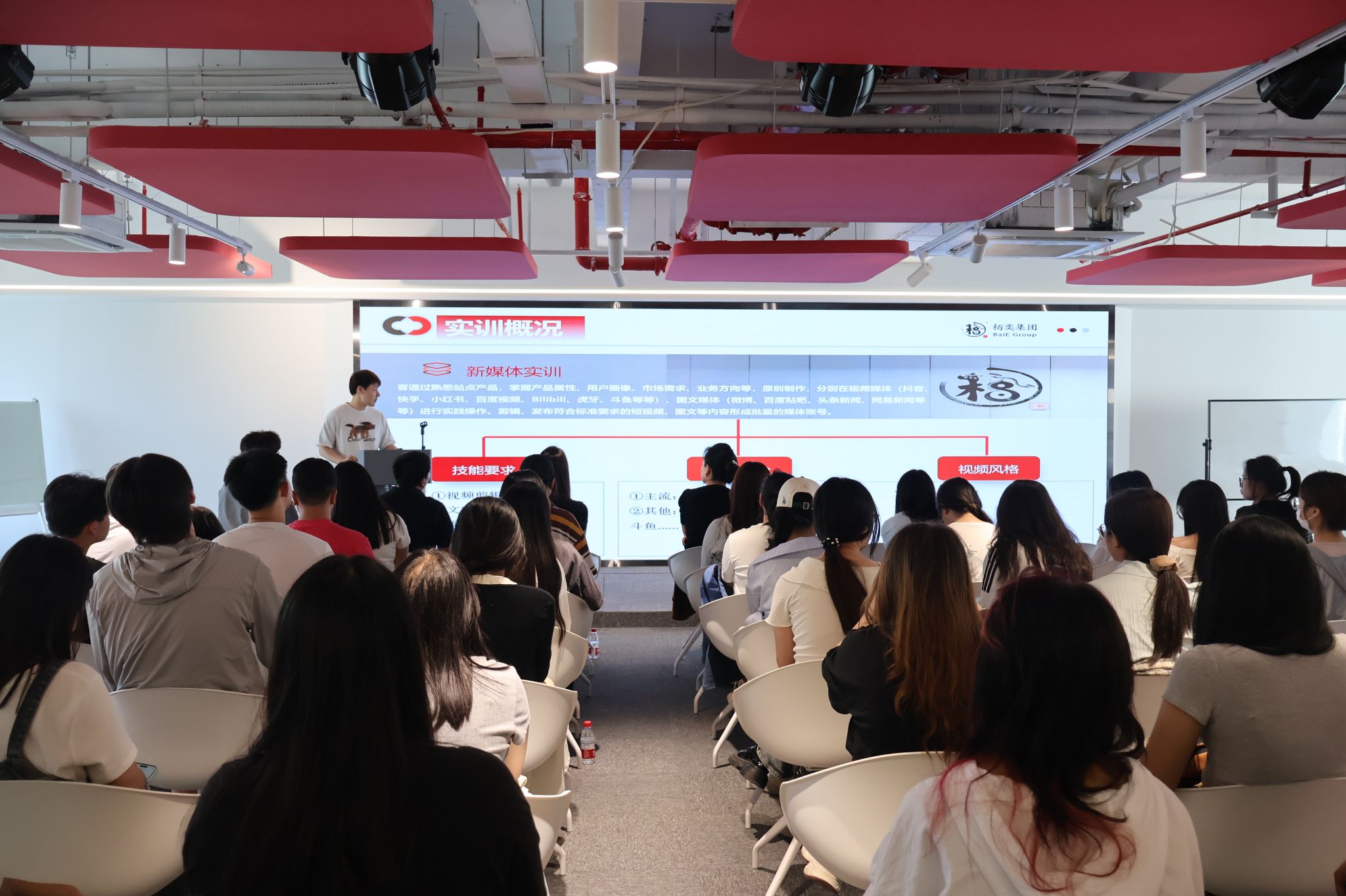 隨后,“刺氪”項目負責人王君詳細講解了短視頻行業(yè)的商業(yè)邏輯,涵蓋趨勢分析、內容制作、軟件運營及數據分析等環(huán)節(jié)。技術指導崔瀚文則結合案例,拆解了游戲類短視頻的制作類型與全流程。人力資源總監(jiān)王汐妍介紹了“產教融合新媒體實訓營”的培訓方式、地點、要求、職業(yè)發(fā)展路徑、實訓就業(yè)等具體情況。同學們圍繞“零經驗如何入行”“行業(yè)發(fā)展趨勢”等話題踴躍提問,并表示對實訓營非常感興趣,主動加群報名。