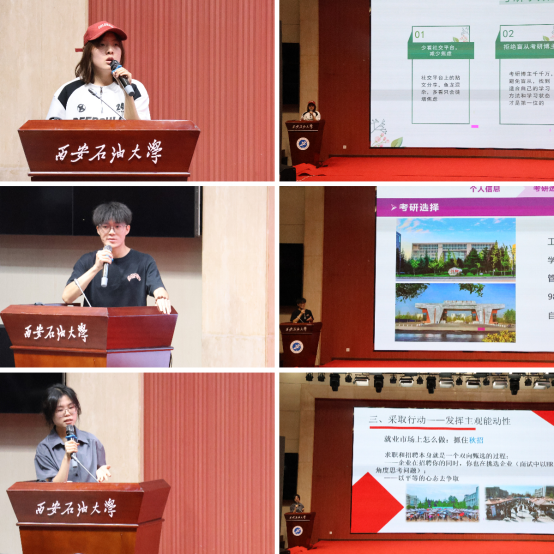 2021級(jí)優(yōu)秀學(xué)生代表金倩茹、榮崇、李亞菲依次做考研、就業(yè)經(jīng)驗(yàn)分享。他們結(jié)合自身經(jīng)歷,從目標(biāo)確立、時(shí)間規(guī)劃、復(fù)習(xí)策略、信息搜集、心態(tài)調(diào)整到簡(jiǎn)歷制作、面試技巧、實(shí)習(xí)選擇、offer決策等多個(gè)維度,與同學(xué)們展開(kāi)分享交流,為同學(xué)們提供實(shí)戰(zhàn)心得。