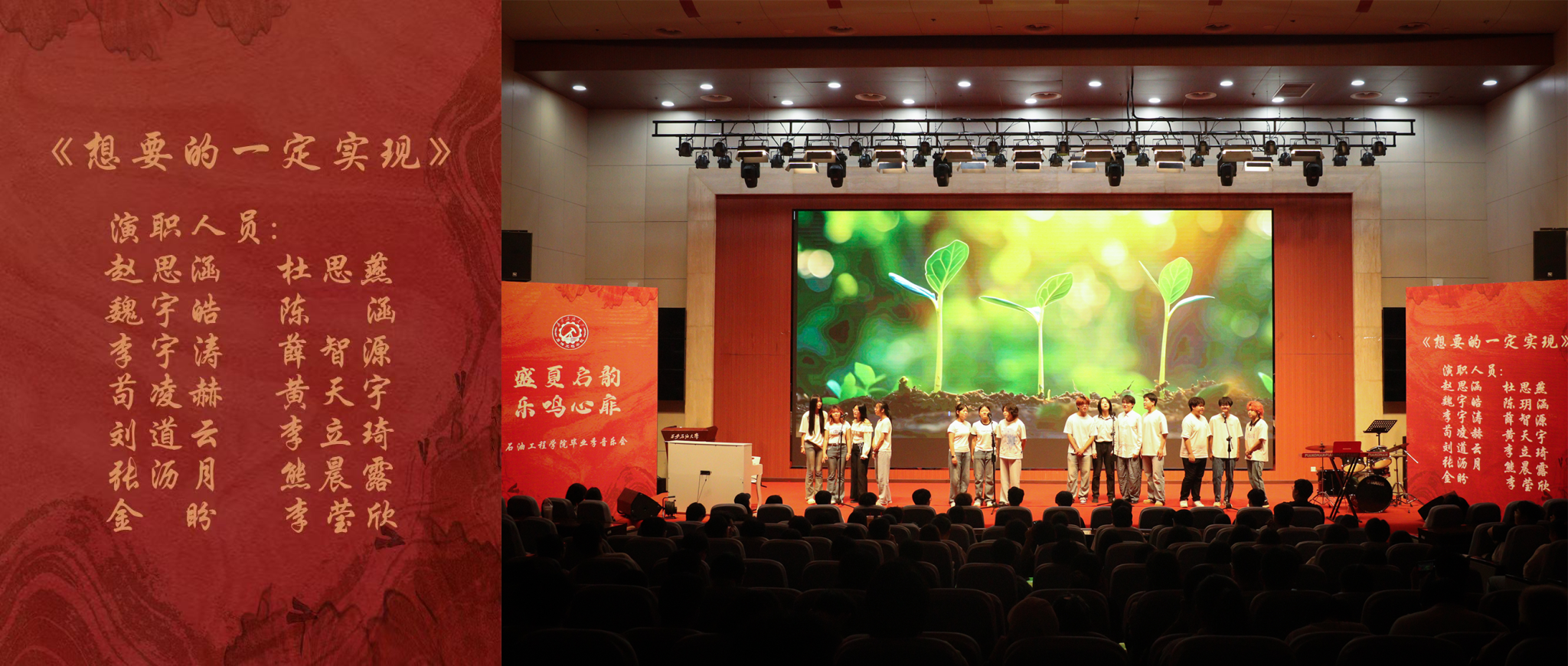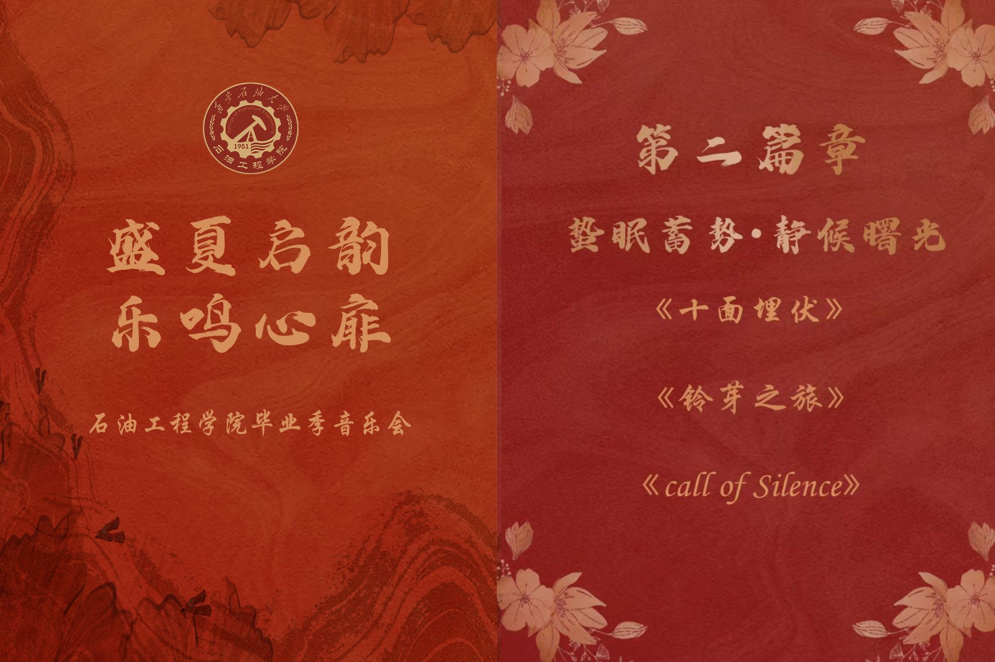 為深入貫徹落實學校第三次黨代會精神,積極響應“一流西石大、文化西石大、幸福西石大”建設,傳承和弘揚石油精神、鐵人精神、春雨精神,6月6日晚,石油工程學院“盛夏啟韻,樂鳴心扉”畢業(yè)季音樂會在鄠邑校區(qū)圖書館弘石報告廳深情上演。音樂會以校史脈絡為敘事主線,通過四個篇章的音樂演繹,串聯(lián)起學校74年發(fā)展歷程中的重要節(jié)點,為師生呈現(xiàn)了一場兼具歷史厚重感與青春感染力的視聽盛宴,學院師生及兄弟院系嘉賓400余人共同觀看了此次演出。