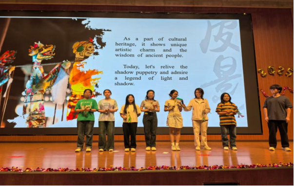 學子們以英語為舟,破浪前行,整個舞臺成為了文化交流的璀璨窗口。經濟管理學院張云喆的深情獨唱《Strawberries & Cigarettes》和電子工程學院馬翔宇獻唱的迪士尼經典《Reflection》盡顯聲音魅力;新能源學院史沐涵演繹的《Tough Love》更是將情感與語言技巧融為一體;計算機學院、地球科學與工程學院帶來的《長發(fā)公主》《狗狗博客》及理學院呈現(xiàn)的《奇跡男孩》配音秀,精準捕捉角色神韻,展現(xiàn)了卓越的語音模仿與表達力;人文學院張藝菲與新能源學院高天樂等聯(lián)袂獻演的傳統(tǒng)《嫦娥奔月》皮影戲,光影流轉間流淌著東方神韻;石油工程學院施瀾、李熠輝創(chuàng)新的《傳說中的英語相聲》,妙語連珠中架起中西幽默的橋梁;人文學院學子演繹的《武林外傳》情景劇,則為經典注入國際化表達。歌曲串燒由來自石工、經管、電工、地科、計算機、材料、人文、化工、理學院、新能源、機械等11個學院的近100名學子共同完成,《Take me home》《Country Road》經典旋律響徹全場,氣勢恢宏,綜合性大學的育人優(yōu)勢在此刻熠熠生輝。從臺前的演員陣容到幕后的技術支撐,處處可見各個學院廣泛參與的身影,每一個環(huán)節(jié)的緊密銜接,都是跨學院團隊協(xié)作精神的勝利。