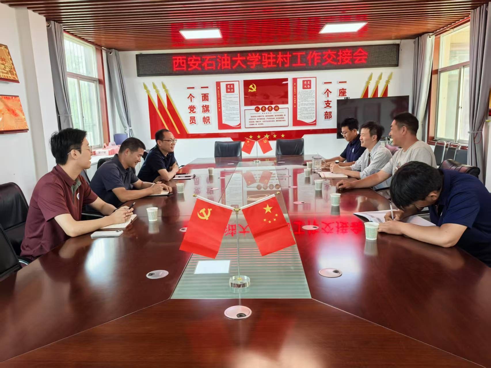 2025年6月17日上午,西安石油大學(xué)黨委組織部副部長(zhǎng)張歡、工會(huì)副主席王鈞一行專(zhuān)程赴永壽縣堅(jiān)固村,組織開(kāi)展駐村第一書(shū)記輪換交接工作。新任駐村第一書(shū)記姜英哲同志、原第一書(shū)記聶康晨同志、現(xiàn)任駐村工作隊(duì)員范俊鵬、康偉同志,以及堅(jiān)固村黨支部書(shū)記李小勇共同參加了交接工作會(huì)議,會(huì)議由張歡主持。