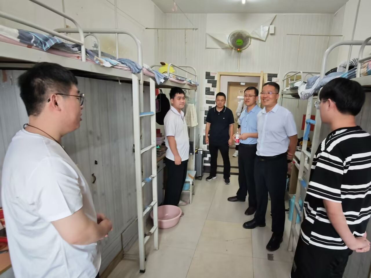 6月17日,理學院黨委書記席利哲,院長折延宏,副書記楊富民帶領學生工作辦公室副主任龐波,畢業(yè)班輔導員林曄一起深入畢業(yè)生宿舍,開展走訪慰問活動,為即將踏上新征程的畢業(yè)生們送去學院的關懷與祝福。