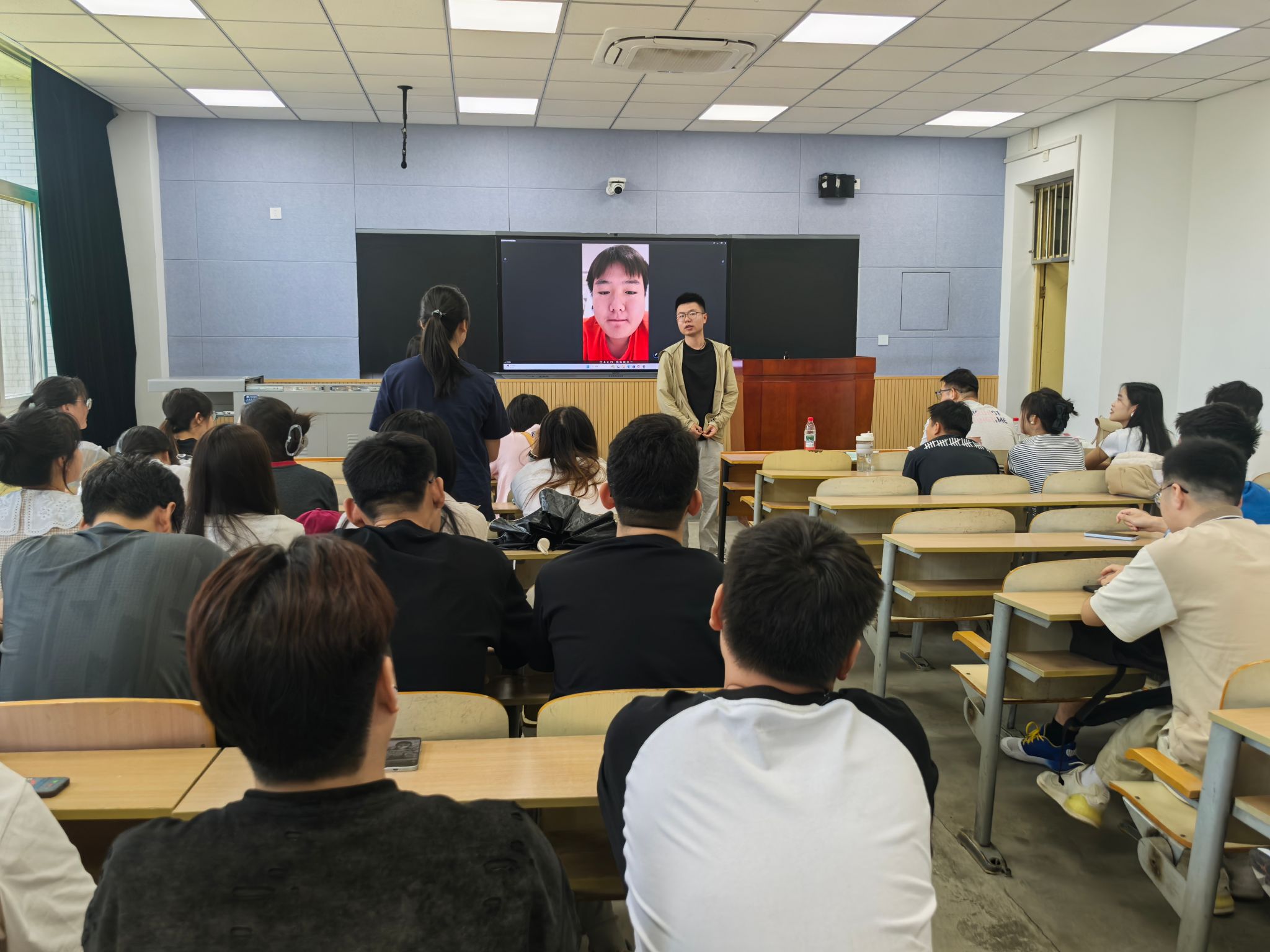 在互動問答環(huán)節(jié),現(xiàn)場氣氛熱烈。2024級同學(xué)們針對就業(yè)環(huán)境及崗位、面試技巧、科研壓力緩解、論文投稿等問題踴躍提問。三位畢業(yè)研究生代表結(jié)合自身經(jīng)驗?zāi)托慕獯穑o出了許多實用的建議。