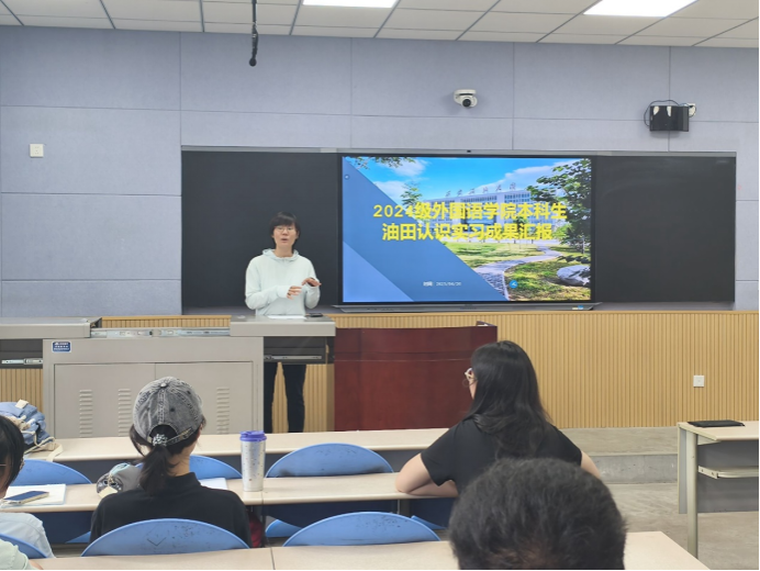 在成果匯報(bào)環(huán)節(jié),2024級(jí)英語、翻譯、俄語3個(gè)專業(yè)7個(gè)班級(jí)以雙語調(diào)研報(bào)告、演講、實(shí)習(xí)題材攝影成果展示等形式展示實(shí)習(xí)收獲。展現(xiàn)外語能力與能源知識(shí)的融合成果,為實(shí)習(xí)畫上圓滿句號(hào)。各班級(jí)匯報(bào)既展現(xiàn)了油氣勘探流程、壓裂技術(shù)等行業(yè)知識(shí)的認(rèn)知成果,也突出外語在技術(shù)文檔翻譯、國際合作溝通中的應(yīng)用實(shí)踐。各班班主任老師對學(xué)生將語言能力與能源行業(yè)深度結(jié)合的成果給予高度評(píng)價(jià)。