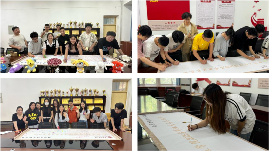 6月5日至6日,學(xué)院組織畢業(yè)生在鄠邑校區(qū)行知樓321室舉行畢業(yè)“長卷拓印”活動(dòng)。畢業(yè)生們用“一滴油”印章在長卷上莊重拓印,一個(gè)個(gè)名字與?;铡⑿S?xùn)圖案交相輝映,形成一幅流動(dòng)的青春圖譜。“這滴油像紐帶,把我們和母校永遠(yuǎn)連在一起?!比斯ぶ悄軐I(yè)畢業(yè)生折浩小心翼翼地在長卷上留下名字,眼中滿是對(duì)母校的眷戀。