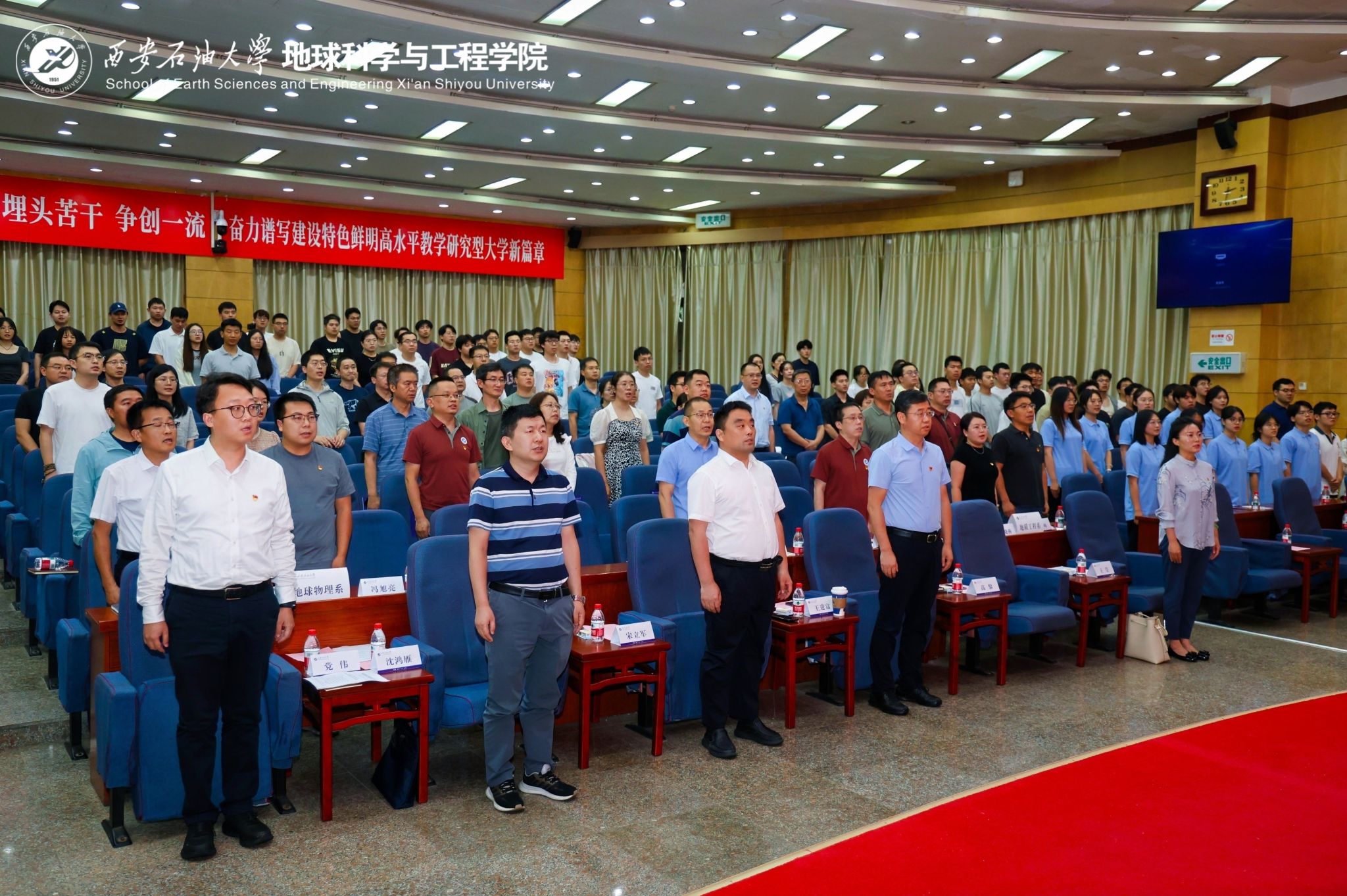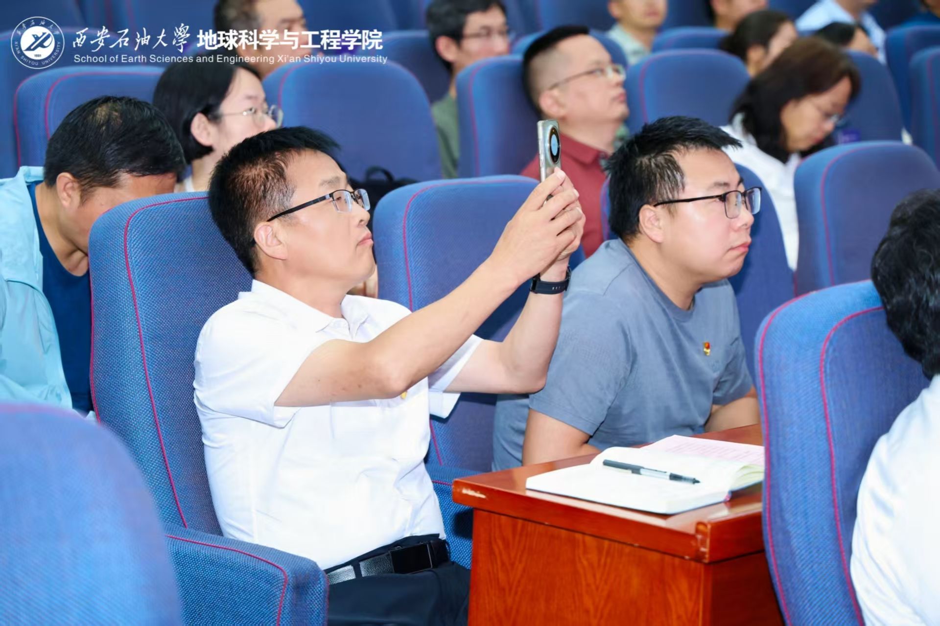 在慶祝中國(guó)共產(chǎn)黨成立104周年,深入貫徹中央八項(xiàng)規(guī)定精神學(xué)習(xí)教育走深走實(shí)和貫徹落實(shí)學(xué)?!叭齻€(gè)年”建設(shè)部署之際,6月30日下午,地球科學(xué)與工程學(xué)院黨委在雁塔校區(qū)學(xué)術(shù)報(bào)告廳舉行“智慧教育 你我同行”同上一堂思政課暨深入貫徹中央八項(xiàng)規(guī)定精神學(xué)習(xí)教育主題黨日活動(dòng)。校黨委副書(shū)記、校長(zhǎng)王進(jìn)富出席活動(dòng)并講授思政課暨學(xué)習(xí)教育專(zhuān)題黨課。學(xué)院黨政領(lǐng)導(dǎo)班子成員,黨委委員、理論學(xué)習(xí)中心組成員,各系黨支部書(shū)記、主任,師生員工及黨員代表等200余人參加?;顒?dòng)由學(xué)院黨委書(shū)記高黎主持。
