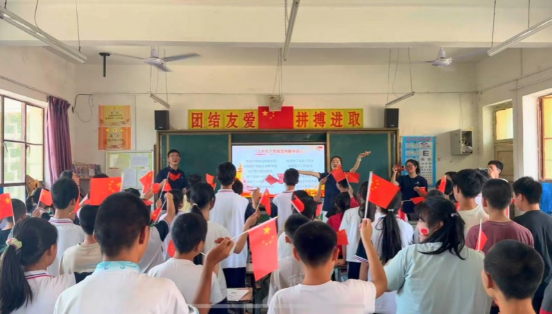 實踐團成員以西安事變?yōu)榍腥朦c,為4所學(xué)校近200名中小學(xué)生講授了一堂生動的愛國主義教育課。課堂創(chuàng)新采用“雙師教學(xué)+多媒體沉浸”模式,主講教師通過展示歷史影像資料,生動還原西安事變?nèi)^程;課程還穿插了即時問答環(huán)節(jié)。在課堂最后,輔助教師組織學(xué)生集體合唱紅色歌曲《沒有共產(chǎn)黨就沒有新中國》,深化了孩子們的愛國情感。