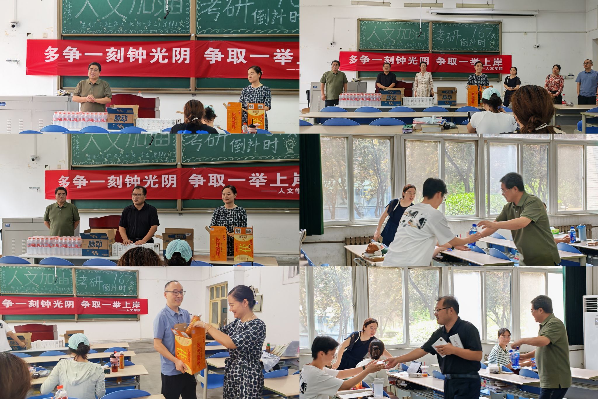 為鼓勵(lì)留校備戰(zhàn)學(xué)子,傳遞學(xué)院關(guān)心關(guān)懷,7月19日上午,人文學(xué)院黨委書(shū)記余小勇,院長(zhǎng)方亭,黨委副書(shū)記盛丹,副院長(zhǎng)方松林、蘭昆,系主任王敬艷、馬可、曹盼宮及輔導(dǎo)員代表前往鄠邑校區(qū)自習(xí)室,親切看望慰問(wèn)暑期留校備考學(xué)子,為他們送去清涼消暑慰問(wèn)品。
