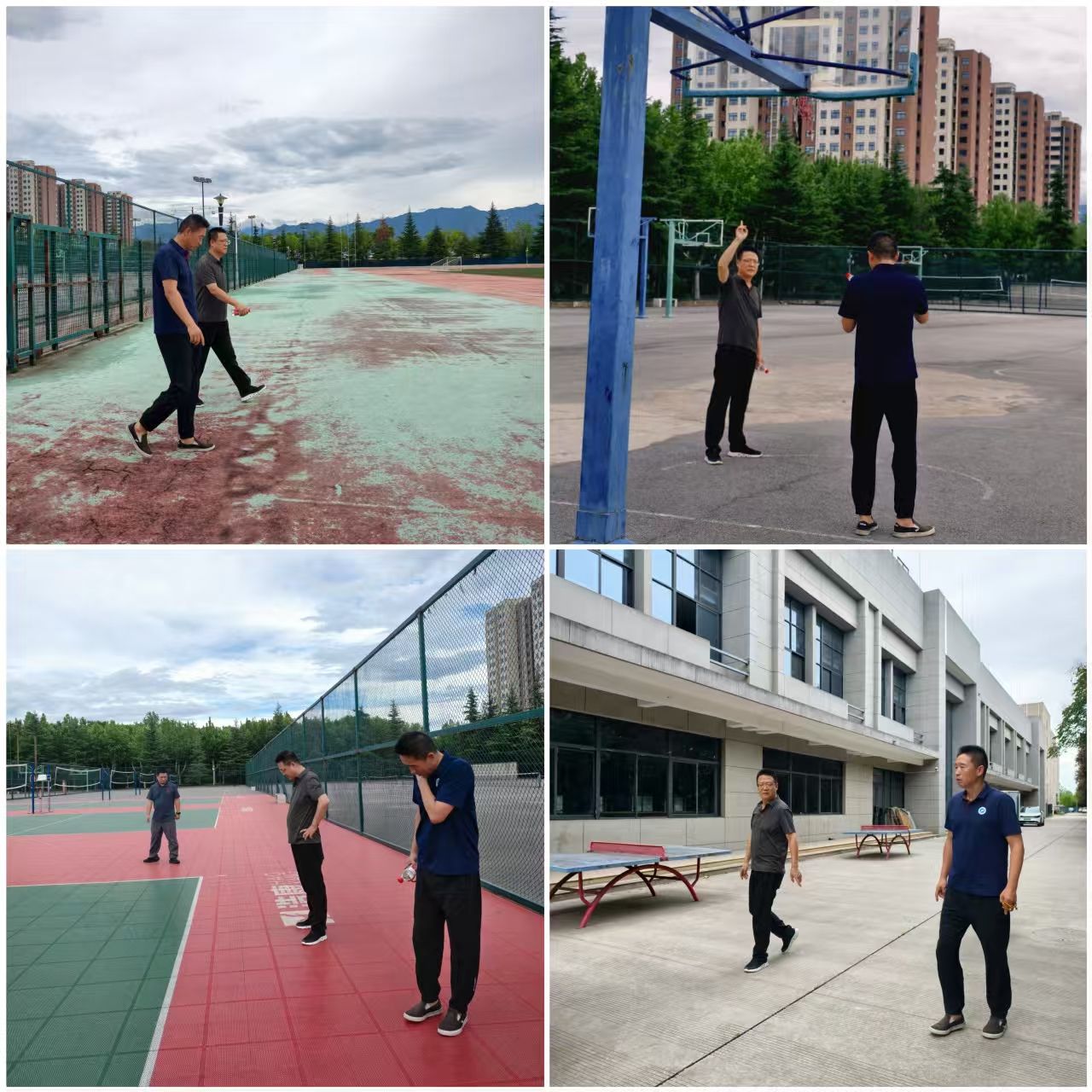 在安全專項(xiàng)檢查中,學(xué)院對(duì)鄠邑校區(qū)西體育場(chǎng)、籃球場(chǎng)、排球場(chǎng)、網(wǎng)球場(chǎng)、羽毛球場(chǎng)、素質(zhì)拓展基地等重要區(qū)域進(jìn)行了細(xì)致的安全隱患排查。檢查內(nèi)容涵蓋場(chǎng)地設(shè)施結(jié)構(gòu)穩(wěn)固性、用電安全、消防設(shè)備完好性、防護(hù)設(shè)施可靠性以及場(chǎng)地器材維護(hù)狀況等多個(gè)關(guān)鍵環(huán)節(jié)。劉小波說,校園安全是學(xué)校高質(zhì)量發(fā)展的基石,我們要以“時(shí)時(shí)放心不下”的責(zé)任感抓好隱患排查,為學(xué)校發(fā)展貢獻(xiàn)體育力量。李壽邦結(jié)合檢查情況,要求學(xué)院相關(guān)負(fù)責(zé)人、場(chǎng)地管理員要定期巡查,對(duì)發(fā)現(xiàn)的老化區(qū)域要設(shè)置警戒標(biāo)識(shí),并及時(shí)上報(bào)學(xué)校,組織更換,確保師生使用安全。