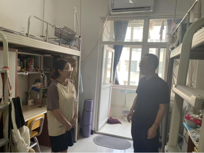 為進(jìn)一步了解暑期留校學(xué)生的生活、備考情況,關(guān)心關(guān)愛考研學(xué)子復(fù)習(xí)狀況,為他們鼓舞信心。8月15日,外國(guó)語學(xué)院黨委書記張建高、副書記邱嶺一行前往鄠邑校區(qū)自習(xí)室、學(xué)生宿舍,看望慰問暑期留校備戰(zhàn)考研學(xué)生并發(fā)放慰問品。