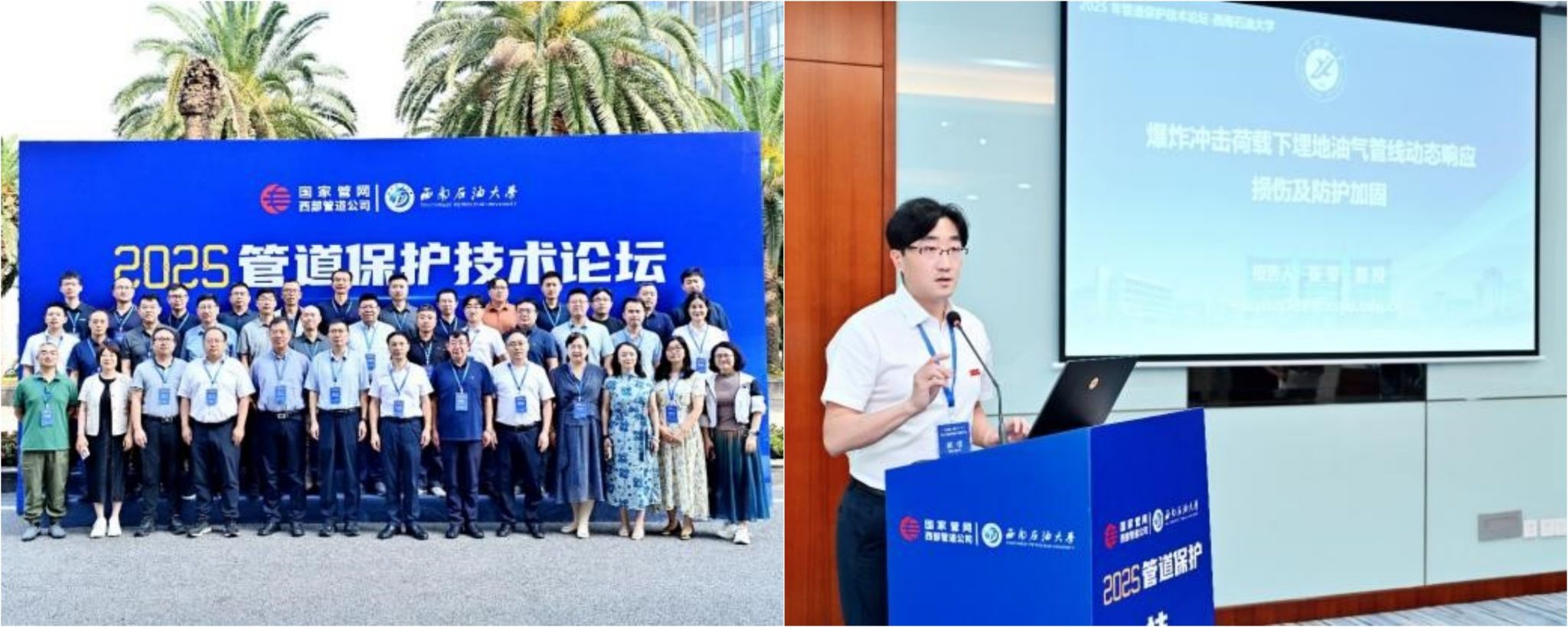 8月20日—22日,管道工程學(xué)院受邀委派副院長崔瑩教授代表學(xué)院赴西南石油大學(xué)參加了由國家管網(wǎng)集團(tuán)西部管道公司主辦,西南石油大學(xué)承辦的“2025管道保護(hù)技術(shù)論壇”并做了“爆炸沖擊荷載下埋地油氣管線動態(tài)響應(yīng)損傷及防護(hù)加固”主題報告。論壇上國家管網(wǎng)集團(tuán)西部管道公司黨委委員、副總經(jīng)理王新生和西南石油大學(xué)黨委書記張烈輝分別做了主旨發(fā)言。崔瑩的學(xué)術(shù)報告獲得了會議主持人中國石油大學(xué)(華東)李玉星教授、召集人西南石油大學(xué)廖柯熹教授等與會專家們的肯定,并對學(xué)院在極端荷載下長輸油氣管線的安全評價方面做出的前沿探索和基礎(chǔ)研究表示了贊賞。