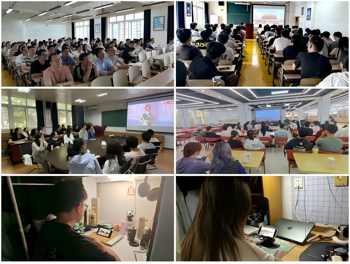 各學院研究生黨(團)支部也在實驗室、會議室、黨員活動室等場所,通過中央電視臺、人民日報、新華社等官方平臺,組織研究生同步收看大會直播,實現(xiàn)了學習教育的廣泛覆蓋。大會結(jié)束后,各學院組織座談交流會。同學們圍繞閱兵儀式展現(xiàn)出的國家力量、國防現(xiàn)代化建設(shè)偉大成就以及革命先烈的英勇事跡,結(jié)合自身專業(yè)學習與科研實踐,踴躍發(fā)言,暢談心得體會。