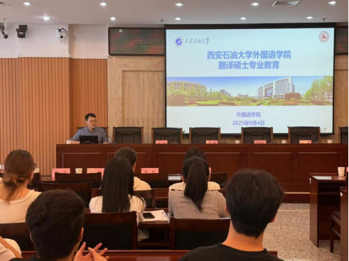 9月4日下午,外國(guó)語(yǔ)學(xué)院2025級(jí)翻譯碩士研究生開(kāi)學(xué)典禮暨入學(xué)專業(yè)教育在鄠邑校區(qū)圖書館第一會(huì)議室舉行。學(xué)院黨委書記張建高、副書記邱嶺、副院長(zhǎng)陳武、鄧林、研究生導(dǎo)師以及25級(jí)翻譯碩士研究生參加會(huì)議。會(huì)議由院黨委副書記邱嶺主持。