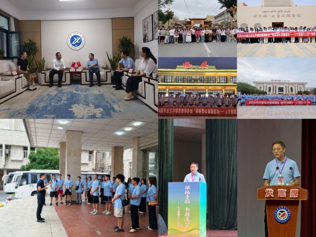 8月4日至14日,我校受邀參加新疆自治區(qū)“胡楊青松 新疆建功——人才建疆萬人行”第二期活動。就業(yè)創(chuàng)業(yè)指導中心、離退休工作處及各院(系)組織40余名師生走進和田地區(qū)、烏魯木齊市的重點產業(yè)園區(qū)、企業(yè)、學校、博物館、社區(qū),通過實地參觀、座談交流等,深入開展就業(yè)研學,精準對接人才需求,拓寬就業(yè)渠道。活動前期,副校長種宇宏與新疆人才創(chuàng)新科技有限公司副總經理王彥斐一行在雁塔校區(qū)行政樓會客廳座談交流。雙方就進一步加強校地交流,深化產學研合作達成共識。就業(yè)創(chuàng)業(yè)指導中心主任王亮為參與師生舉行出征儀式并發(fā)放“愛心禮包”。就業(yè)創(chuàng)業(yè)指導中心副主任楊生強代表此行5所學校在和田地委黨校舉行的“胡楊青松 新疆建功——人才建疆萬人行”活動啟動儀式上發(fā)言。