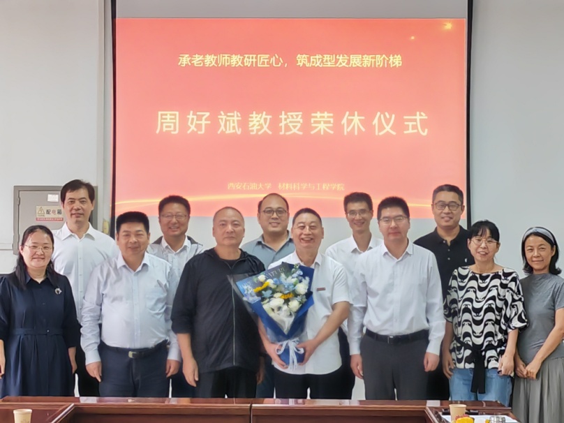 9月10日上午,在第41個(gè)教師節(jié)之際,材料科學(xué)與工程學(xué)院在鄠邑校區(qū)天工樓204會(huì)議室為2025年退休的周好斌教授舉行了隆重而溫馨的教職工榮休儀式。儀式由學(xué)院黨委書記耿嶺主持,副校長(zhǎng)張驍勇教授、學(xué)院領(lǐng)導(dǎo)班子成員、各教研室主任和教師代表參加了儀式。