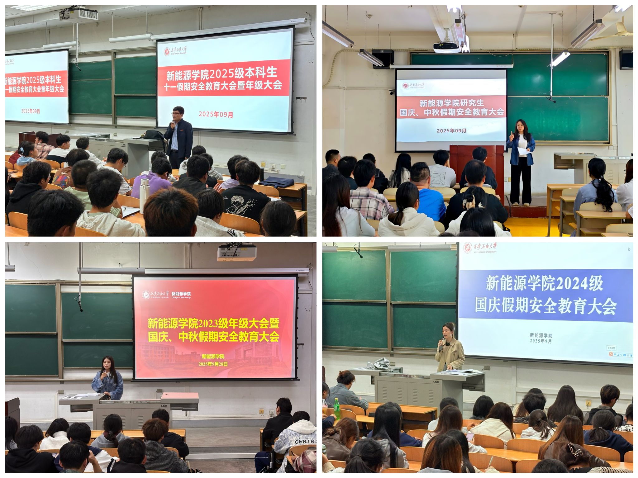 為切實加強學(xué)院學(xué)生安全教育管理,確保國慶、中秋雙節(jié)期間安全穩(wěn)定,927日至29日,新能源學(xué)院組織各本科生、研究生年級分批次召開假期安全教育暨年級大會。學(xué)院全體學(xué)生在輔導(dǎo)員的組織下全員參與,通過系統(tǒng)化、全覆蓋的安全教育舉措,筑牢安全管理防線。