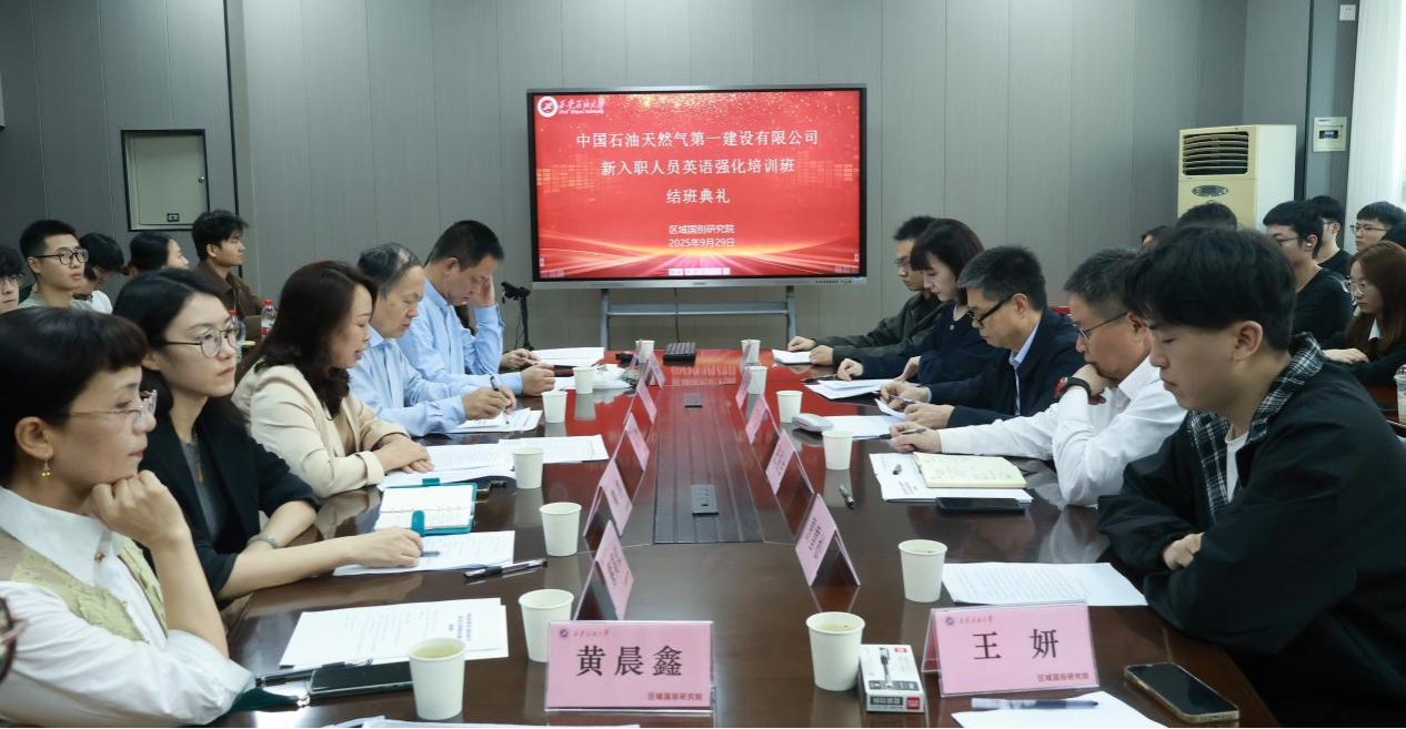 9月29日下午,區(qū)域國別研究院在雁塔校區(qū)東方石油樓4-04會議室舉辦了中國石油天然氣第一建設(shè)有限公司新入職人員國際化能力培訓(xùn)班結(jié)業(yè)典禮。中國石油天然氣第一建設(shè)有限公司總經(jīng)理助理劉明國、總經(jīng)理助理兼國際事業(yè)部經(jīng)理張俊生、國際事業(yè)部培訓(xùn)主管池凝、區(qū)域國別研究院執(zhí)行院長劉輝、培訓(xùn)班部分任課教師和全體學(xué)員參加了結(jié)業(yè)典禮,結(jié)業(yè)典禮由區(qū)域國別研究院辦公室副主任陶李主持。