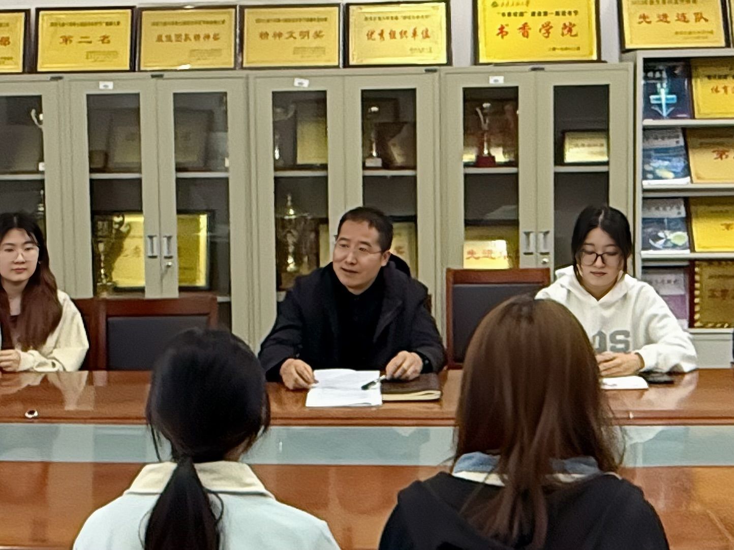 在交流環(huán)節(jié),畢業(yè)生代表們踴躍發(fā)言。有的同學(xué)表示面臨“就業(yè)迷茫期”,對(duì)職業(yè)方向選擇感到困惑;有的同學(xué)關(guān)心專(zhuān)業(yè)對(duì)口問(wèn)題,詢(xún)問(wèn)如何將所學(xué)專(zhuān)業(yè)知識(shí)與職場(chǎng)需求有效對(duì)接;還有同學(xué)就薪資預(yù)期、職場(chǎng)適應(yīng)、行業(yè)發(fā)展前景等具體問(wèn)題尋求建議。兩位領(lǐng)導(dǎo)耐心傾聽(tīng),并逐一給予了細(xì)致解答。