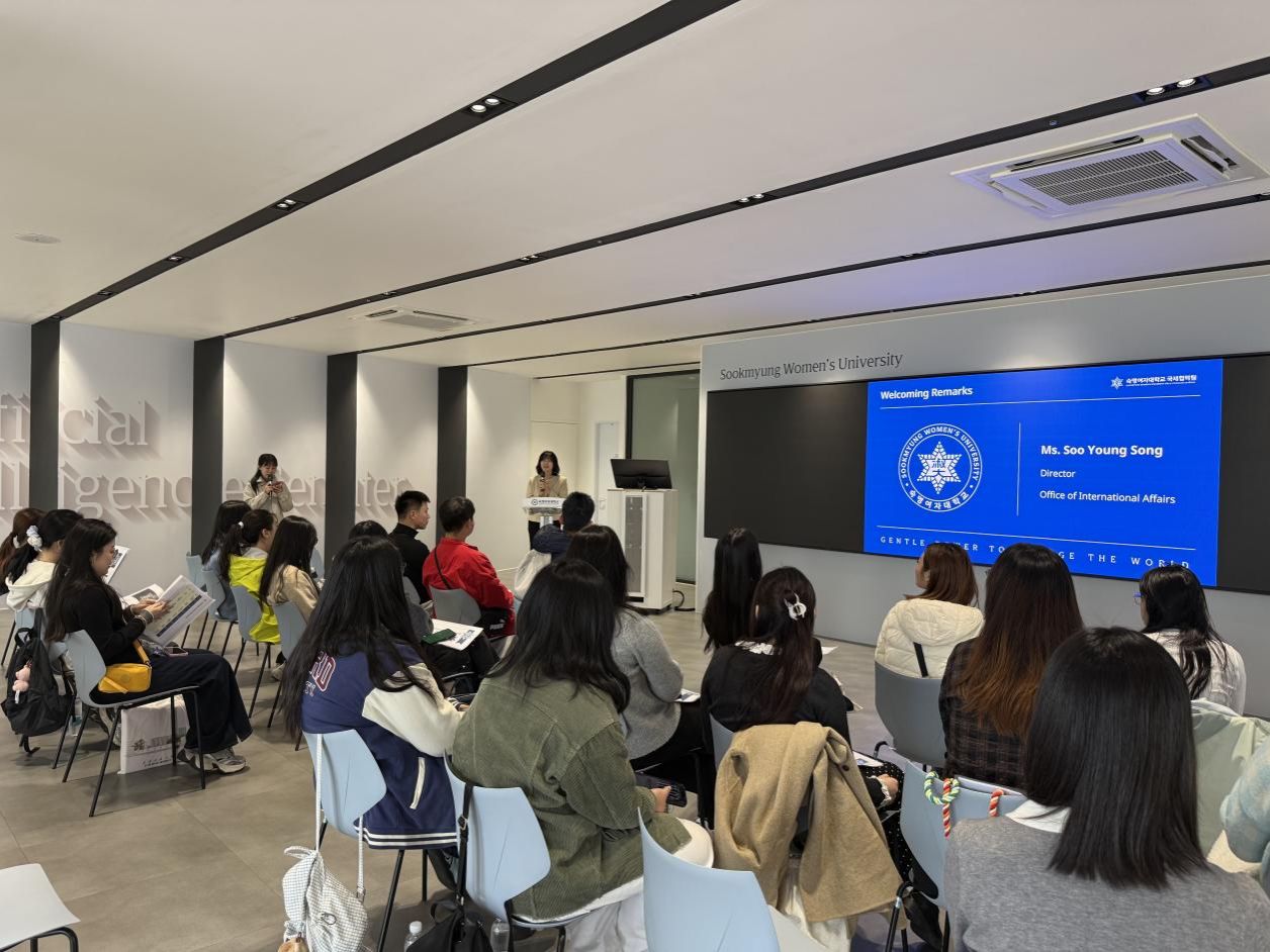 項(xiàng)目伊始,淑明女子大學(xué)為研習(xí)團(tuán)舉行了溫馨的歡迎儀式。淑明女子大學(xué)國(guó)際處國(guó)際協(xié)力組&留學(xué)生服務(wù)組組長(zhǎng)宋秀英對(duì)師生們的到來(lái)表示熱烈歡迎,并詳細(xì)介紹了未來(lái)幾天的學(xué)習(xí)安排與體驗(yàn)計(jì)劃。她鼓勵(lì)同學(xué)們?cè)谡n程學(xué)習(xí)中多感受、多體會(huì),真正融入校園氛圍,深入理解韓國(guó)文化,收獲充實(shí)而難忘的交流經(jīng)驗(yàn)。