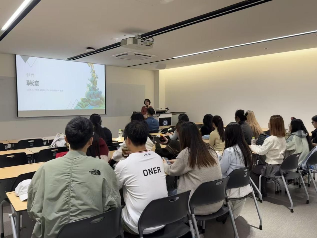 李燕教授帶來(lái)的《韓流》專題研討,則從文化研究的維度展現(xiàn)了韓國(guó)軟實(shí)力。通過(guò)詳實(shí)的數(shù)據(jù)分析和生動(dòng)的案例展示,系統(tǒng)闡釋了韓國(guó)流行文化在影視制作、音樂(lè)產(chǎn)業(yè)、時(shí)尚美妝等領(lǐng)域的創(chuàng)新實(shí)踐與全球傳播策略。講座現(xiàn)場(chǎng),師生圍繞文化創(chuàng)新、青年責(zé)任等議題展開討論,思維的火花在交流中不斷迸發(fā)。