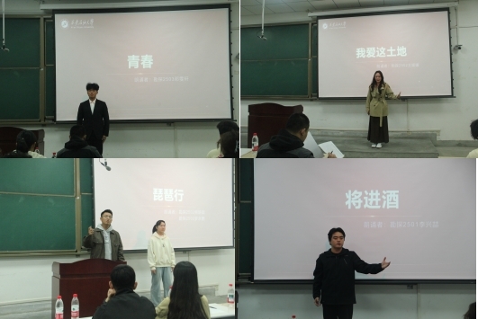 比賽在熱烈氛圍中拉開帷幕。圍繞“典耀中華,賡續(xù)文脈”主題,參賽選手依次登臺,以飽滿的熱情和多樣的形式演繹經(jīng)典作品。有的深情婉轉(zhuǎn),如溪流潺潺;有的激昂澎湃,似烈火熾燃?!秾⑦M酒》的豪邁、《青春》的激揚、《琵琶行》的婉轉(zhuǎn)、《中國文脈》的厚重……選手們用聲音勾勒詩意畫卷,用情感傳遞文化力量,贏得了現(xiàn)場觀眾的陣陣掌聲。經(jīng)過激烈角逐,勘探2503鄧雯軒《青春》 與勘探2501李興喆《將進酒》 斬獲一等獎,并將代表學(xué)院參加校級“秋之韻”詩文配樂朗誦比賽。