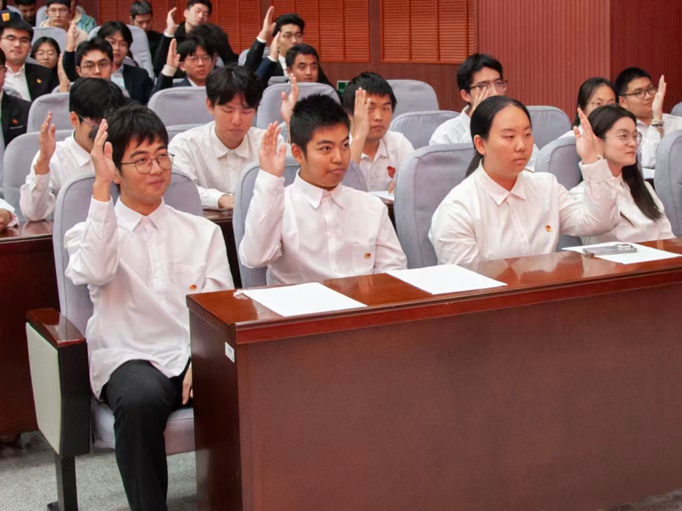 大會最后,全體志愿者高舉右拳,進(jìn)行集體宣誓,鏗鏘有力的誓言回蕩在報告廳內(nèi),標(biāo)志著石油工程學(xué)院春雨青年志愿者協(xié)會正式開啟志愿征程。