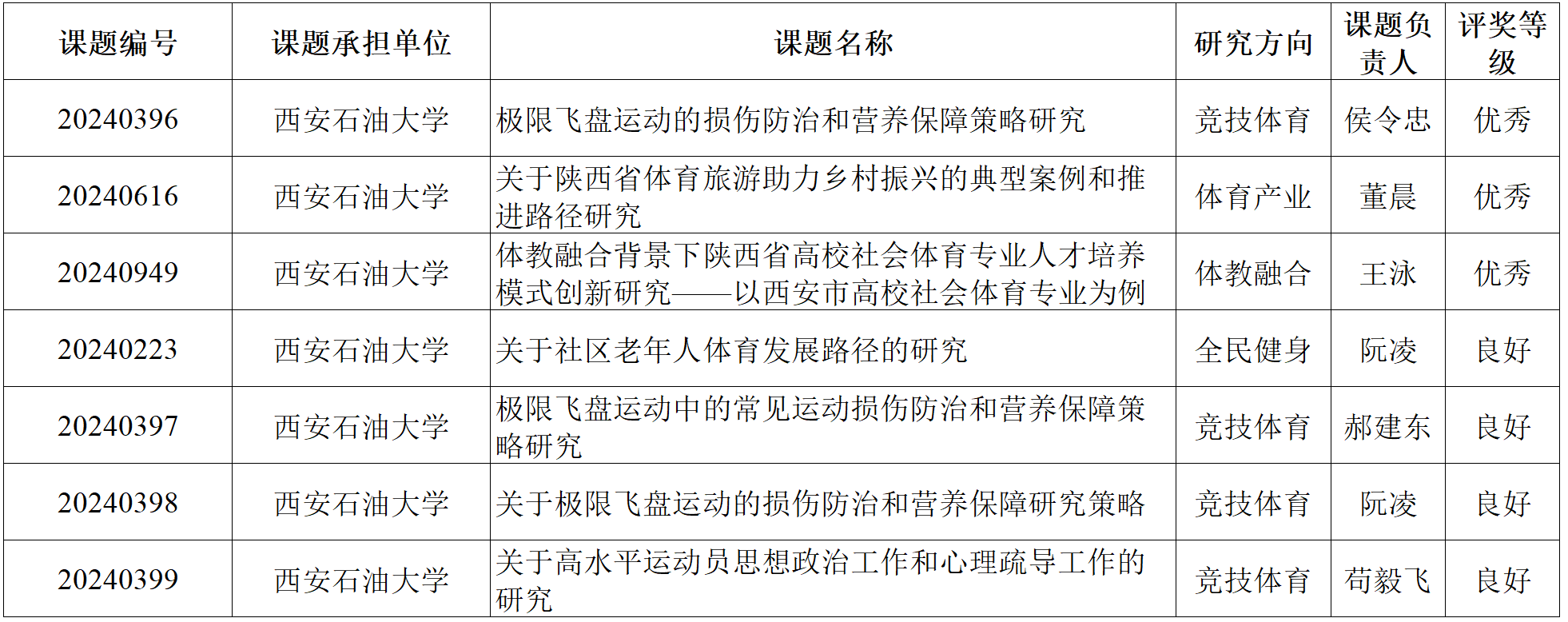 近日,陜西省體育局發(fā)布《陜西省體育局關(guān)于2025年度常規(guī)課題結(jié)題的通知》陜體函〔2025〕183號文件,體育學(xué)院喜獲豐收。經(jīng)評審,學(xué)院共有7項(xiàng)課題通過結(jié)題驗(yàn)收,其中3項(xiàng)獲評“優(yōu)秀”、4項(xiàng)獲評“良好”。同時(shí),學(xué)院獲批陜西省體育局2025年常規(guī)課題17項(xiàng)。