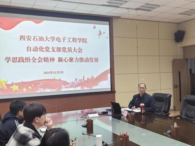 趙健對會議進行指導總結(jié)并為支部建設提出三條寶貴意見:一是強化規(guī)范性,嚴格落實黨支部工作條例,規(guī)范組織生活、黨員教育管理等各項工作。二是提升凝聚力,通過豐富支部活動、加強黨員間溝通協(xié)作,營造團結(jié)奮進的良好氛圍。三是形成貢獻度,筑牢戰(zhàn)斗堡壘,立足石油石化行業(yè)特色,深入挖掘國家重大技術(shù)突破中的自動化技術(shù)應用案例,制作科普視頻等宣傳素材并廣泛傳播,展現(xiàn)學科優(yōu)勢與擔當,以實際行動推動黨的二十屆四中全會精神落地生根,為學校與行業(yè)發(fā)展貢獻力量。