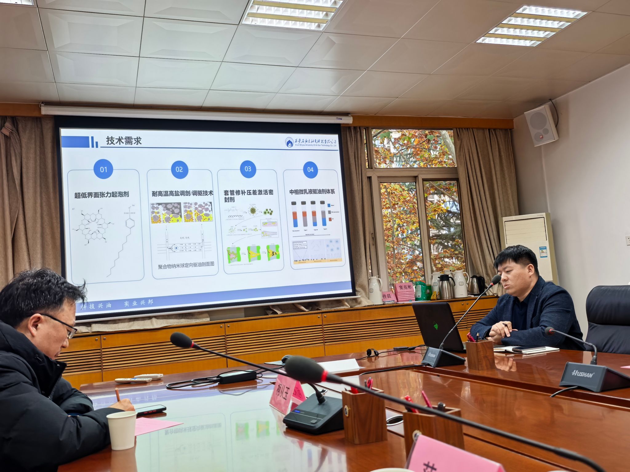 會(huì)上,李婷介紹了公司的基本情況,黃兆豐發(fā)布了公司的技術(shù)需求。柯從玉、陳世軍分別“中相微乳液驅(qū)油劑篩選優(yōu)化及性能評(píng)價(jià)”“高溫高鹽油藏調(diào)剖堵水技術(shù)”“長(zhǎng)慶油田低滲/超低滲油藏超低界面張力起泡劑”為題對(duì)公司的技術(shù)需求進(jìn)行了揭榜匯報(bào)。隨后校企雙方就技術(shù)需求和研發(fā)方案細(xì)節(jié)進(jìn)行深入溝通交流。