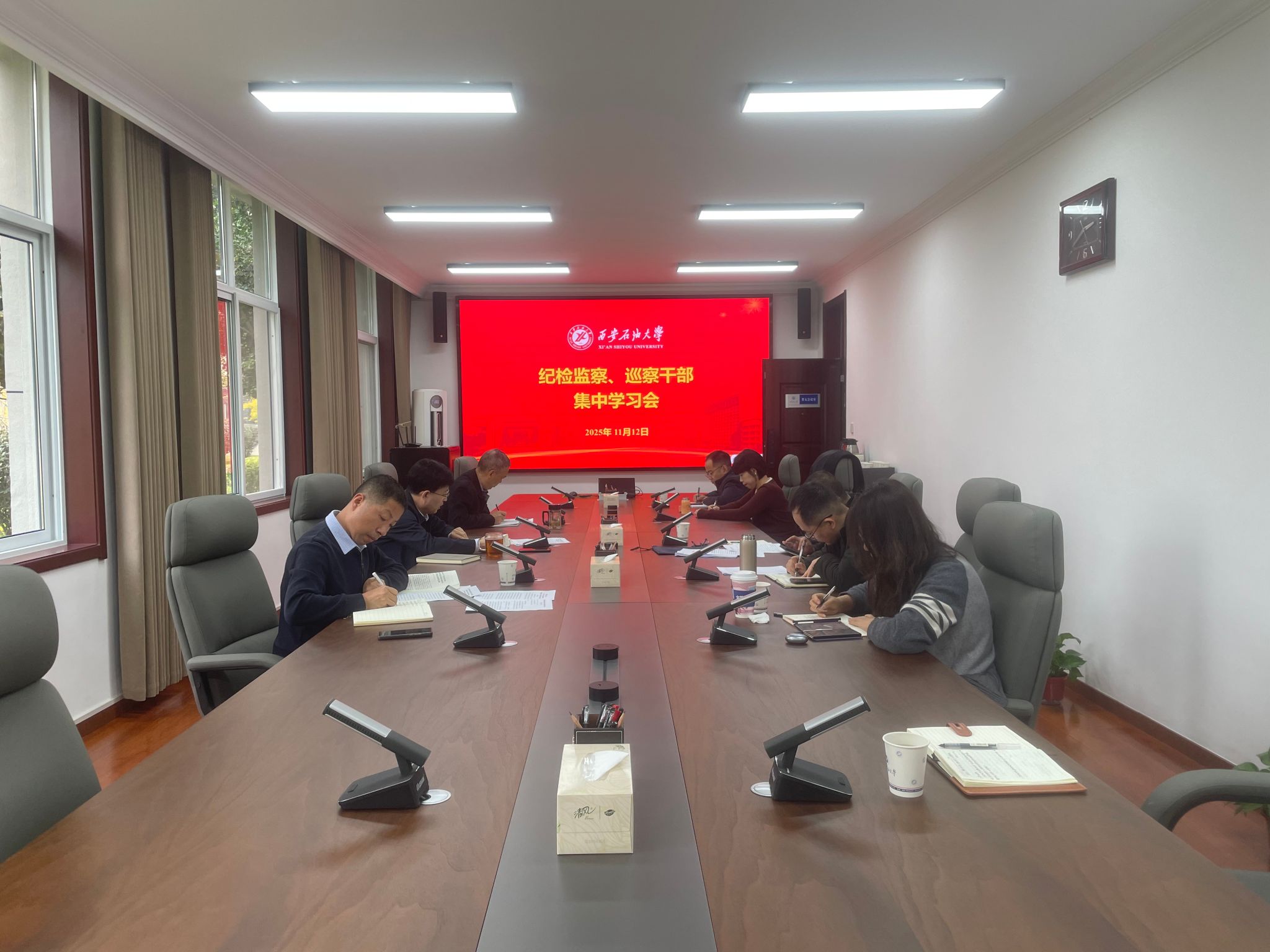 11月12日上午,紀檢巡察干部2025年第21次集中學習會在邑校區(qū)辦公樓第五會議室召開。校黨委副書記、紀委書記、監(jiān)察專員王輝強主持學習會。紀檢監(jiān)察機構(gòu)、黨委巡察工作辦公室全體干部參加會議。