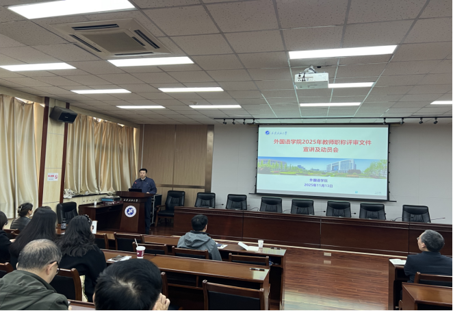 為切實幫助學院教師深入理解和準確把握職稱評審文件精神,明確申報流程、評價標準及材料準備要求,確保后續(xù)職稱申報工作有序高效推進,外國語學院于11月13日下午在雁塔校區(qū)會議中心第五會議室召開了學?!奥毞Q評審辦法”宣講及申報動員會。學院領導和全體教職工參加了此次會議。