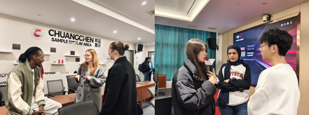公司外籍人力資源總監(jiān)劉獻(xiàn)懿熱情接待了師生一行,并帶領(lǐng)大家全方位參觀了企業(yè)辦公場所與專業(yè)直播間。通過實地觀摩,留學(xué)生們直觀感受跨境電商的日常運營流程與內(nèi)容創(chuàng)作場景,對跨境電商行業(yè)的工作模式建立了具象化、系統(tǒng)化的認(rèn)知框架。
