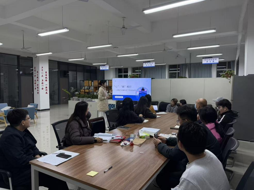 為提升輔導(dǎo)員隊伍的心理育人水平與學(xué)生工作實效,2025年11月27日晚,學(xué)生工作部(處)在鄠邑校區(qū)開物樓117辦公室舉辦第十八期輔導(dǎo)員交流研討沙龍。本次沙龍由經(jīng)濟管理學(xué)院李夏凝擔任主講,圍繞“‘心’‘新’相印——心理技巧在輔導(dǎo)員工作中的應(yīng)用”這一主題進行了深入分享與交流。新能源學(xué)院黨委副書記袁家寶及各學(xué)院輔導(dǎo)員代表參與了此次活動。