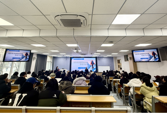張夢楚老師在講座中采用互動(dòng)啟發(fā)式風(fēng)格,緊扣“青年學(xué)子應(yīng)如何理解理想、踐行行動(dòng)、成就價(jià)值”這一主題,從四個(gè)維度進(jìn)行系統(tǒng)講述:一是“自我認(rèn)知,直面當(dāng)下”,引領(lǐng)學(xué)生理性審視自我,建立積極健康的心態(tài);二是“興趣愛好,使命擔(dān)當(dāng)”,鼓勵(lì)青年在發(fā)掘個(gè)人熱情的同時(shí),深入思考如何將理想與社會責(zé)任相融合;三是“能力提升,智慧規(guī)劃”,強(qiáng)調(diào)通過持續(xù)學(xué)習(xí)與實(shí)踐,夯實(shí)實(shí)現(xiàn)理想的核心能力;四是“幸福生活,報(bào)效祖國”,倡導(dǎo)將個(gè)人成長融入國家發(fā)展大局,在奮斗中實(shí)現(xiàn)人生意義與價(jià)值。