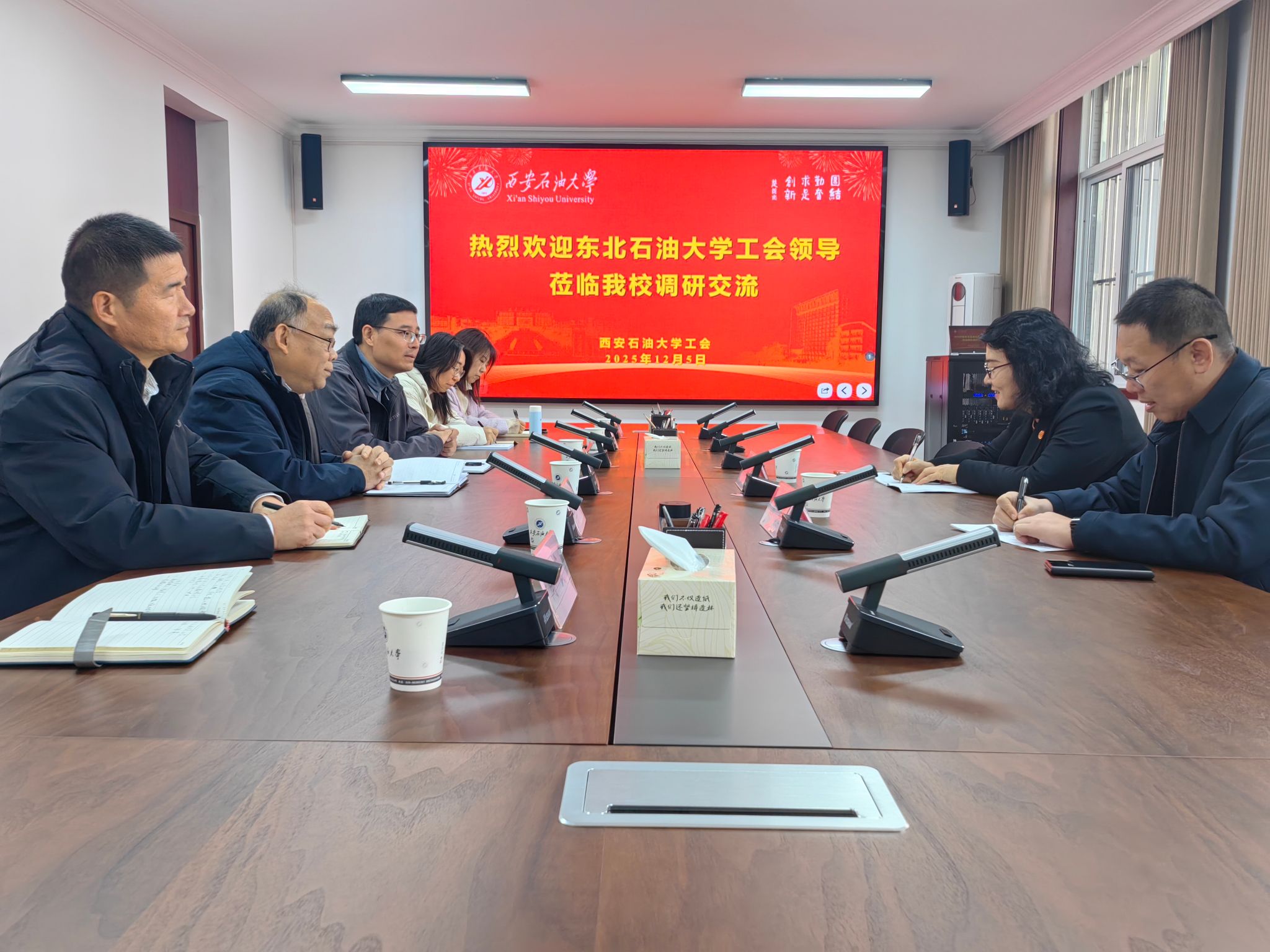12月5日上午,東北石油大學工會副主席(正處級)姜海燕、工會宣教文體部主任張昊一行來我校交流座談。我校工會主席吳民生、音樂系黨總支書記宋振濤、校工會副主席王鈞及工會相關同志參加座談。