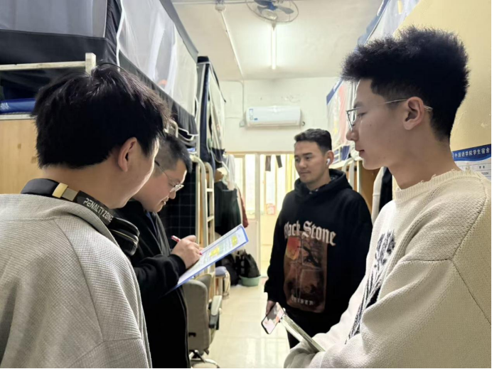 共建文明宿舍,營(yíng)造安全小家。宿舍是學(xué)生生活的重要場(chǎng)所,也是安全管理重點(diǎn)區(qū)域。12月8日下午,輔導(dǎo)員對(duì)宿舍進(jìn)行了走訪和檢查,著重排查了違規(guī)電器、存放易燃易品等安全隱患,提醒學(xué)生要做到人走斷電、鎖好門(mén)窗,切實(shí)防火防盜等安全隱患,督促學(xué)生即查即改。通過(guò)排查,引導(dǎo)學(xué)生遵守管理規(guī)定,將安全教育融入日常,共創(chuàng)安全、溫馨居住環(huán)境。