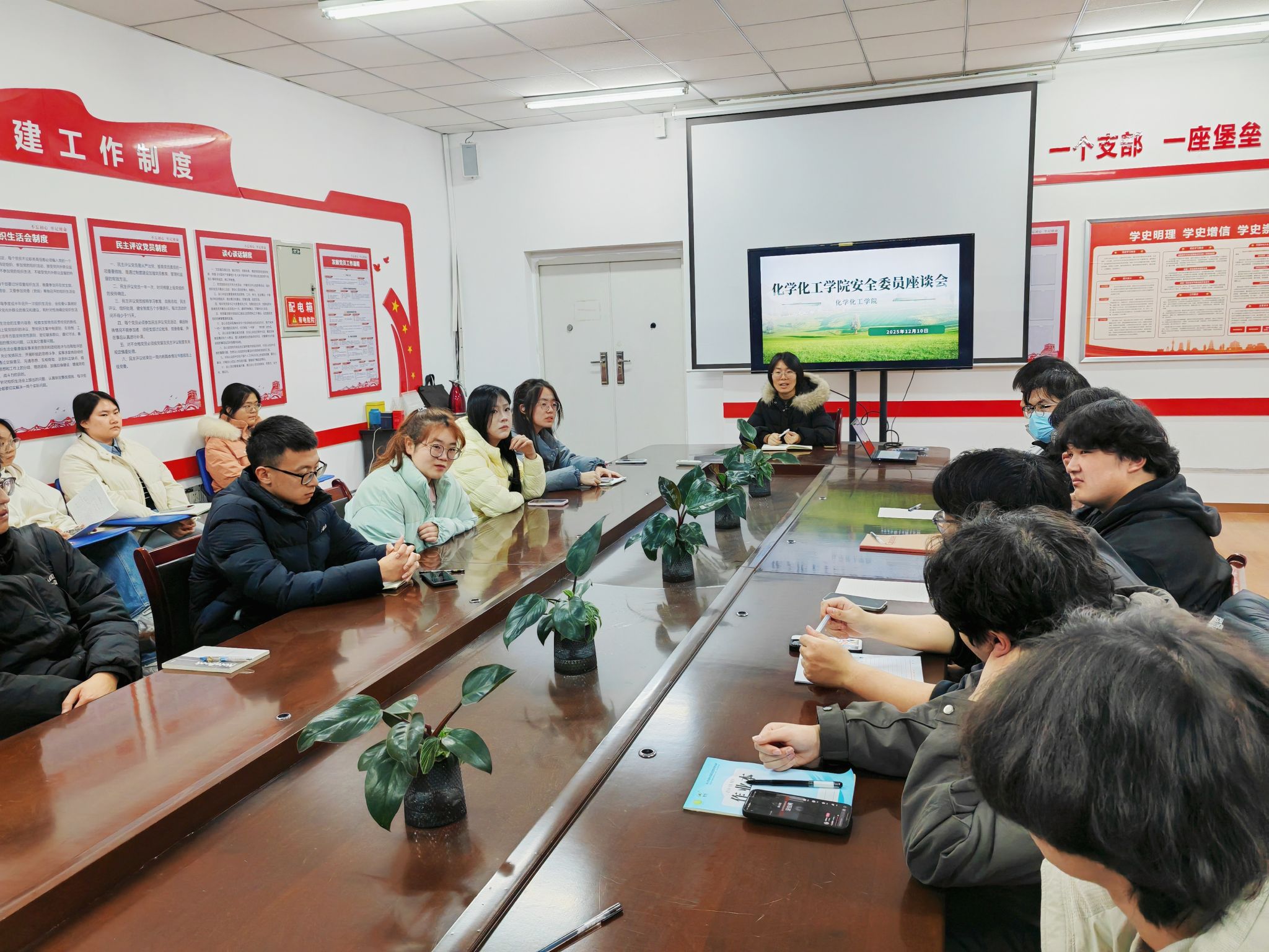 安全無小事,枝葉總關(guān)情。為進一步強化學生安全意識,深入排查校園安全隱患,暢通安全信息反饋渠道,12月10日19:00,化學化工學院于行知樓316會議室組織召開全院安全委員專題座談會。會議由2023級輔導員、團總支書記白婷主持,圍繞近期校園內(nèi)外廣泛關(guān)注的安全議題展開深入討論。