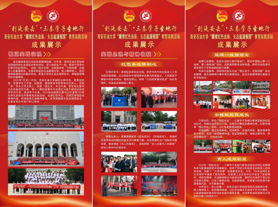 36年來,學校始終堅持組織師生走進延安革命舊址、深入油田生產(chǎn)一線,教育引導學生在革命舊址悟初心、油田一線長本領(lǐng),這既是我?!按笏颊n”實踐育人的重要載體,也是我校堅持石油精神辦學,鐵人精神育人,延安精神鑄魂理念的最好體現(xiàn),更是引導學生堅定理想信念、厚植家國情懷的關(guān)鍵舉措。