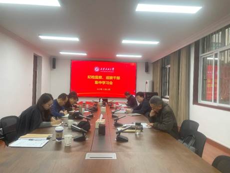 12月12日下午,西安石油大學紀檢監(jiān)察、巡察干部2025年第24次集中學習會在鄠邑校區(qū)辦公樓第四會議室召開。校黨委副書記、紀委書記、監(jiān)察專員王輝強主持學習會。紀檢監(jiān)察機構、黨委巡察工作辦公室全體干部參加會議。