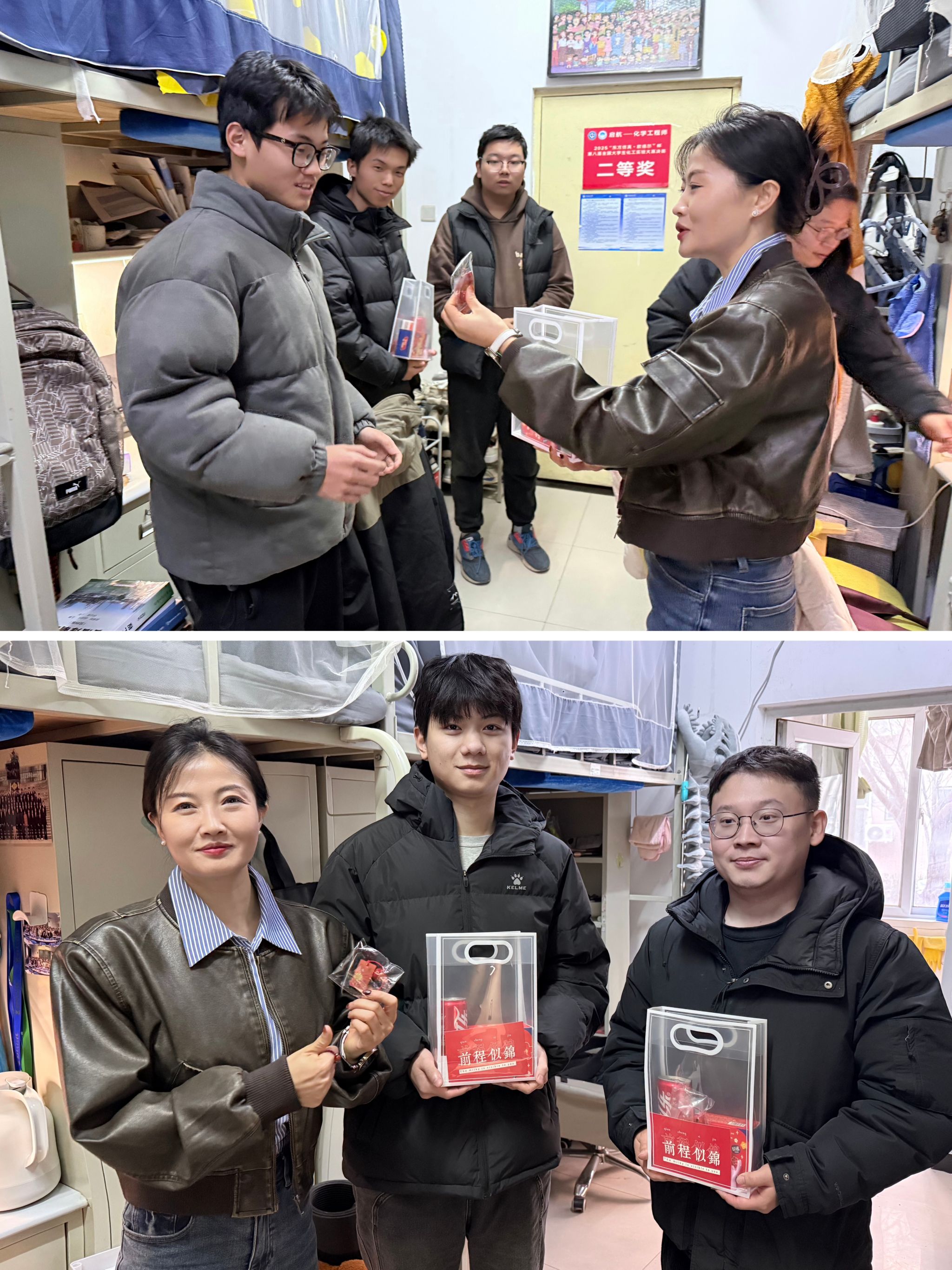 2022級輔導員秦嶺老師慰為同學們送上了精心打造的“定制考研助力禮包”,包含定制的能量飲料和祝福掛墜、寓意吉祥的花生禮盒以及寫滿祝福的鼓勵卡片、個人名牌等,寄托著學院對學子們的美好祝愿。收到來自學院的意外驚喜與真誠關懷,同學們表示,在備考最吃緊的時刻,學院的慰問如同冬日暖陽,讓他們深切感受到了來自“家”的溫暖與力量,一定努力調整狀態(tài),堅持到底、全力以赴,爭取以優(yōu)異的成績面對自己、回報學院。