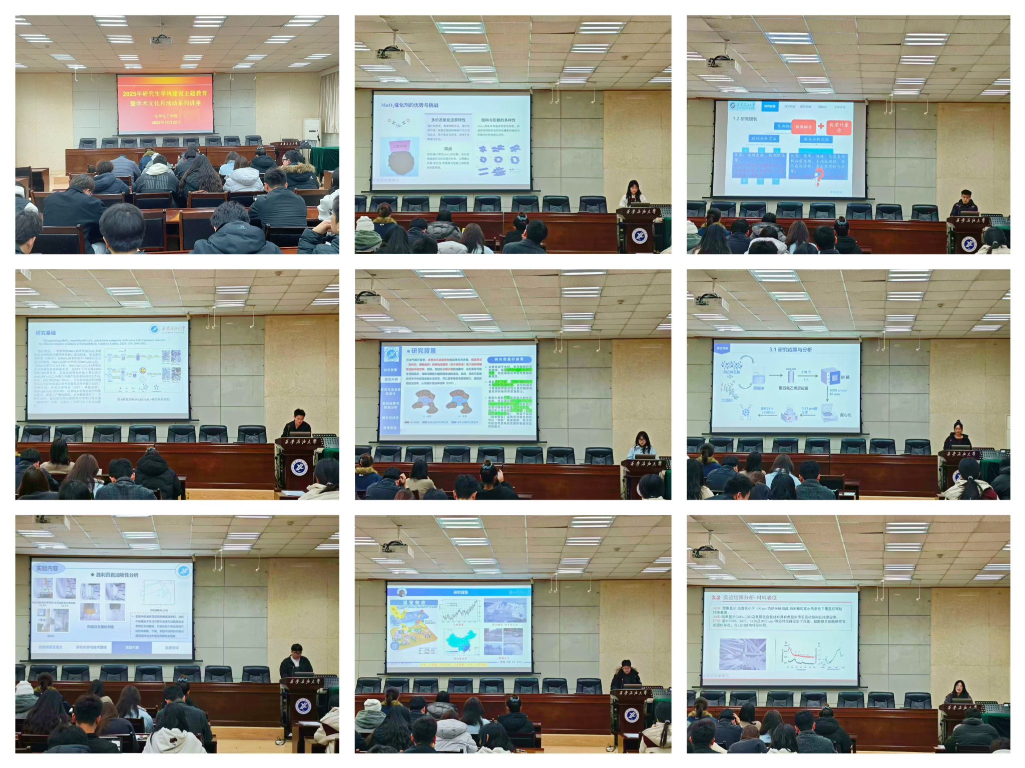 為持續(xù)強(qiáng)化學(xué)風(fēng)引領(lǐng),營造求真務(wù)實(shí)、開拓創(chuàng)新的學(xué)術(shù)氛圍,根據(jù)學(xué)校研究生工作部關(guān)于2025年研究生學(xué)風(fēng)建設(shè)暨學(xué)術(shù)文化活動月的安排部署,12月22日下午,化學(xué)化工學(xué)院在雁塔校區(qū)會議中心第三會議室成功舉辦2025年研究生學(xué)術(shù)文化月第二場學(xué)術(shù)報(bào)告。本場活動中,8位優(yōu)秀研究生圍繞能源催化、環(huán)境治理、功能材料等前沿領(lǐng)域作學(xué)術(shù)匯報(bào),充分展現(xiàn)了扎實(shí)的學(xué)科素養(yǎng)與活躍的科研思維。學(xué)院專業(yè)教師于旭瑩、劉瑞,綜合辦公室秘書馮旭亮,研究生輔導(dǎo)員曹勃及各年級研究生代表參會。