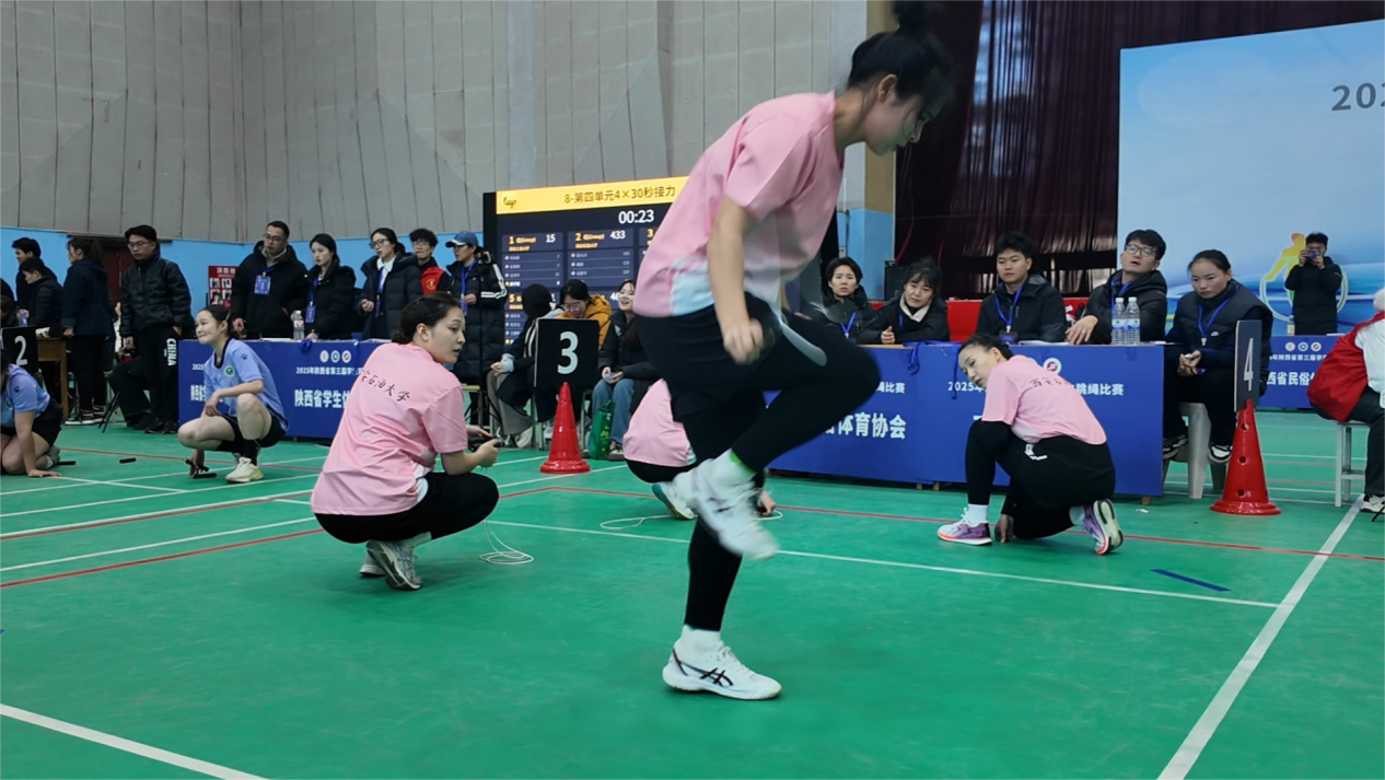 本次賽成功舉辦,依賴于嚴(yán)謹(jǐn)周密的組織保障團隊。主辦方嚴(yán)格遴選裁判團隊,賽前經(jīng)系統(tǒng)培訓(xùn)與考核認(rèn)證,執(zhí)裁時目光如炬、計錄精審,更于間歇反復(fù)磋商尺度,以專業(yè)與公信捍衛(wèi)賽事天平。志愿者團隊盡職盡責(zé),從引導(dǎo)疏通、物資整備到流程銜接無不悉心安排,他們是賽場內(nèi)外最溫情的紐帶。醫(yī)療團隊全程駐守,專業(yè)醫(yī)護與急救物資齊備,為選手安全完賽提供無聲而堅實的守護。西安石油大學(xué)傾力支持,提供一流的場館設(shè)施,更在安保、后勤等方面全面護航,為這場盛會奠定了最可靠的運行基座。我校體育學(xué)院徐小仙老師說:“學(xué)校高度重視本屆賽事的組織與服務(wù),體育學(xué)院始終致力于搭建高水準(zhǔn)體育平臺,將跳繩納入大學(xué)體育課程,推動這項運動在校園中的普及與發(fā)展?!?/span>