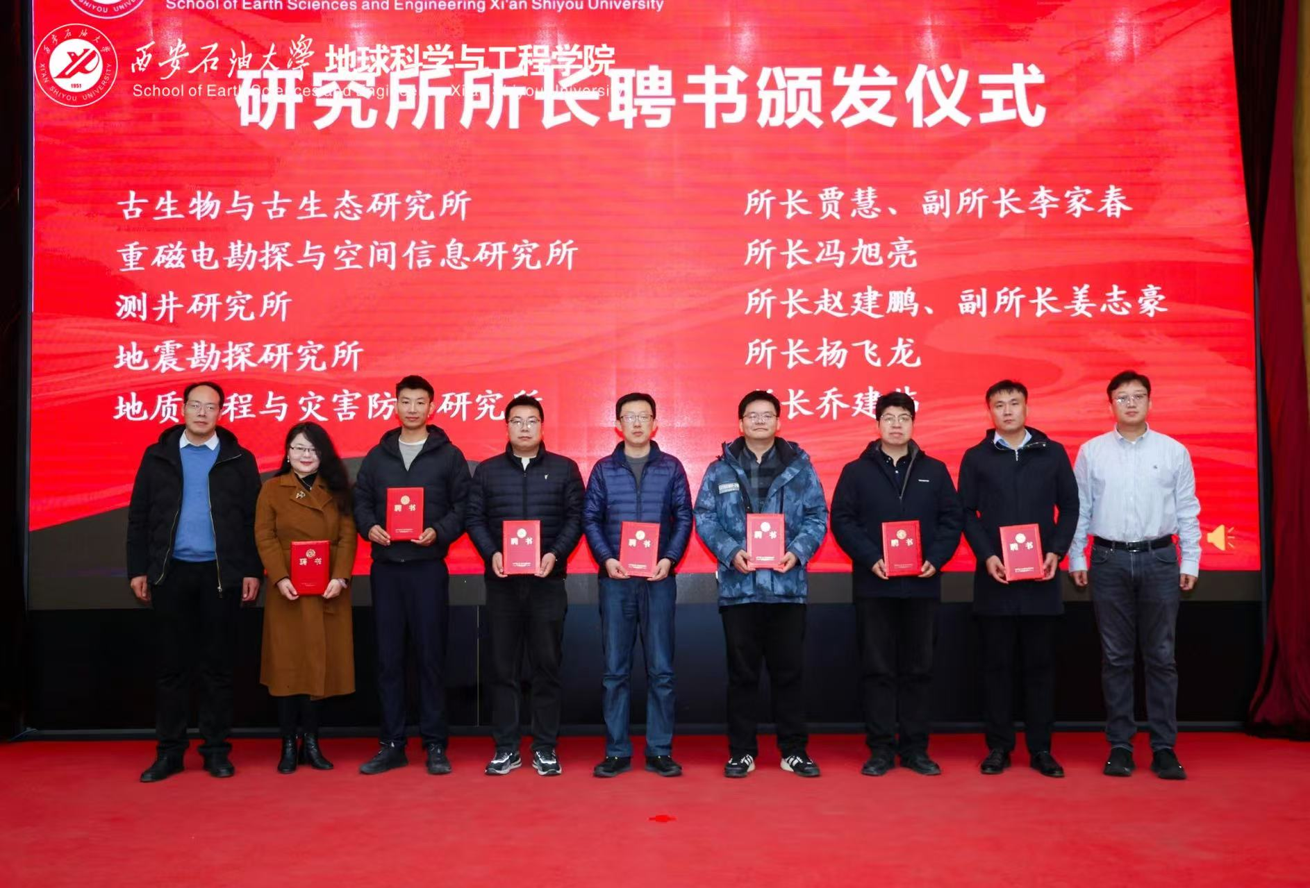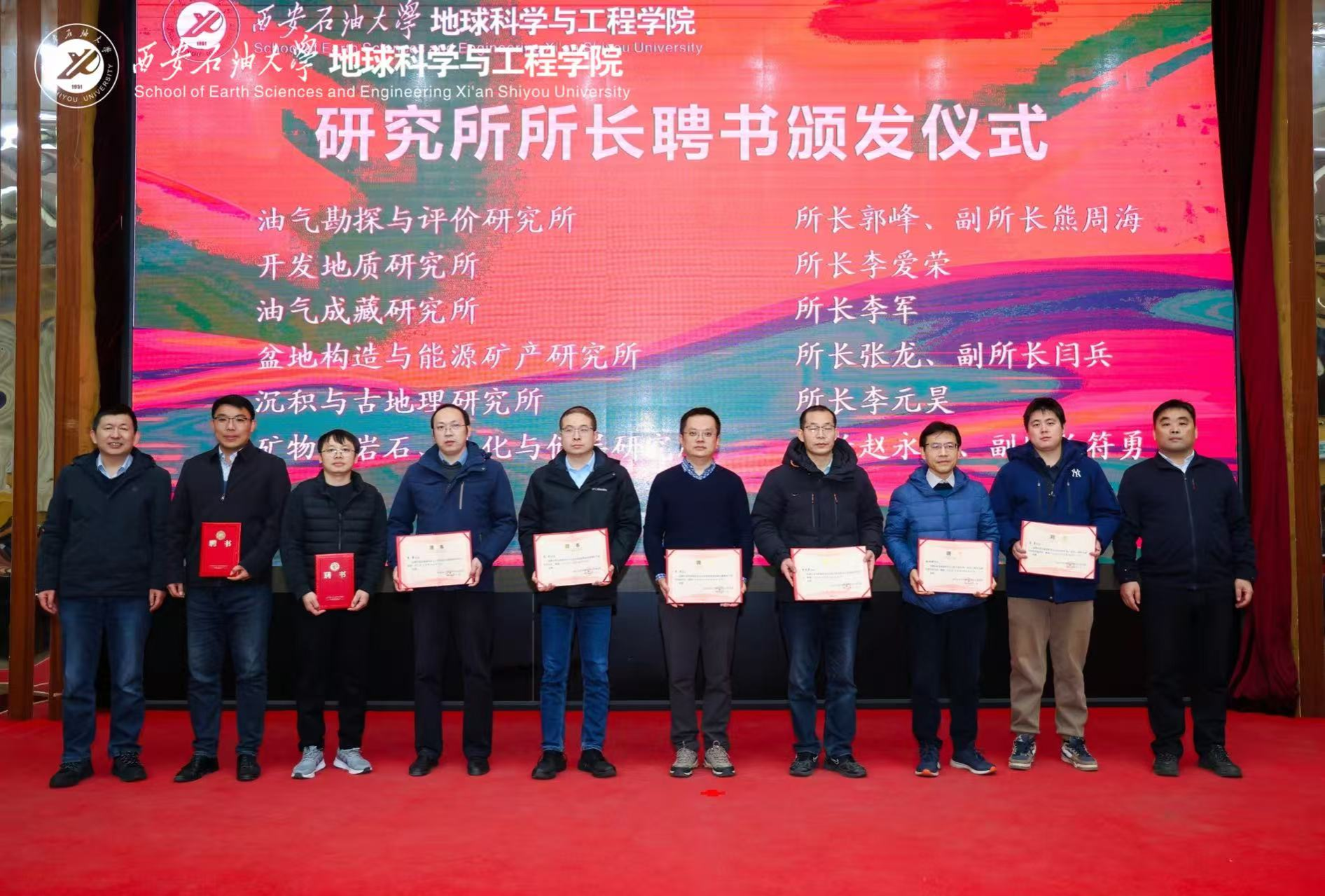 學(xué)院院長(zhǎng)宋立軍宣讀了學(xué)院新一屆研究所所長(zhǎng)聘任決定,學(xué)院領(lǐng)導(dǎo)分批為新組建的油氣地質(zhì)研究所、沉積與古地理研究所等11個(gè)研究所的15位新任所長(zhǎng)頒發(fā)了聘書。