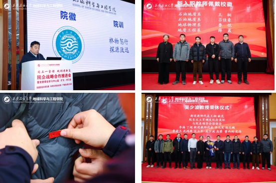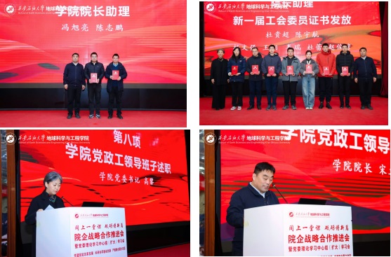 為貫徹落實(shí)學(xué)?!叭齻€(gè)年”建設(shè)部署,深化“院所制”改革,12月22日,地球科學(xué)與工程學(xué)院“同上一堂課 砥礪譜新篇”院企戰(zhàn)略合作推進(jìn)會(huì)暨黨委理論學(xué)習(xí)中心組(擴(kuò)大)學(xué)習(xí)會(huì)在雁塔校區(qū)舉行。會(huì)議以“黨建賦能改革發(fā)展,科研協(xié)同驅(qū)動(dòng)創(chuàng)新,產(chǎn)教融合聚力攻堅(jiān)”為主線,通過聯(lián)合研究院揭牌、前沿學(xué)術(shù)報(bào)告、專題思政課與學(xué)院內(nèi)部建設(shè)系列議程,匯聚發(fā)展共識(shí),擘畫未來藍(lán)圖。校長(zhǎng)王進(jìn)富,長(zhǎng)慶油田首席技術(shù)專家喻健,西安石文軟件有限公司董事長(zhǎng)、總經(jīng)理張小會(huì),副總經(jīng)理?xiàng)铎o波,校友工作與合作交流處相關(guān)負(fù)責(zé)人等校企嘉賓及全院師生代表共同參會(huì)。學(xué)院黨委書記高黎主持會(huì)議。