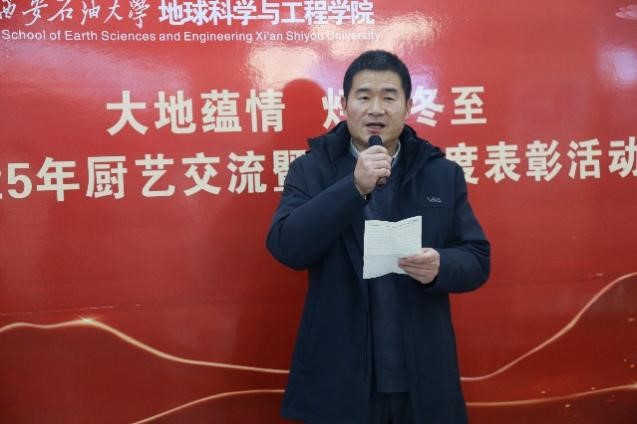 為厚植中華優(yōu)秀傳統(tǒng)文化底蘊(yùn),積極踐行學(xué)校“團(tuán)結(jié) 勤奮 求是 創(chuàng)新”的校風(fēng)精神,弘揚(yáng)地球科學(xué)與工程學(xué)院“大地情懷、勘探精神”的學(xué)科文化內(nèi)核,持續(xù)推進(jìn)“幸福西石大”建設(shè),著力營(yíng)造溫馨和諧的“家”文化氛圍,12月19日上午,地球科學(xué)與工程學(xué)院工會(huì)在雁塔校區(qū)學(xué)生餐廳成功舉辦“大地蘊(yùn)情?烴暖冬至”廚藝交流暨工會(huì)年度表彰活動(dòng)。校工會(huì)副主席王鈞、學(xué)院黨委書(shū)記高黎、院長(zhǎng)宋立軍等與全院95名教職工歡聚一堂,共敘同事情誼,共慶年度佳績(jī)。學(xué)院工會(huì)主席李?lèi)?ài)榮主持活動(dòng)。