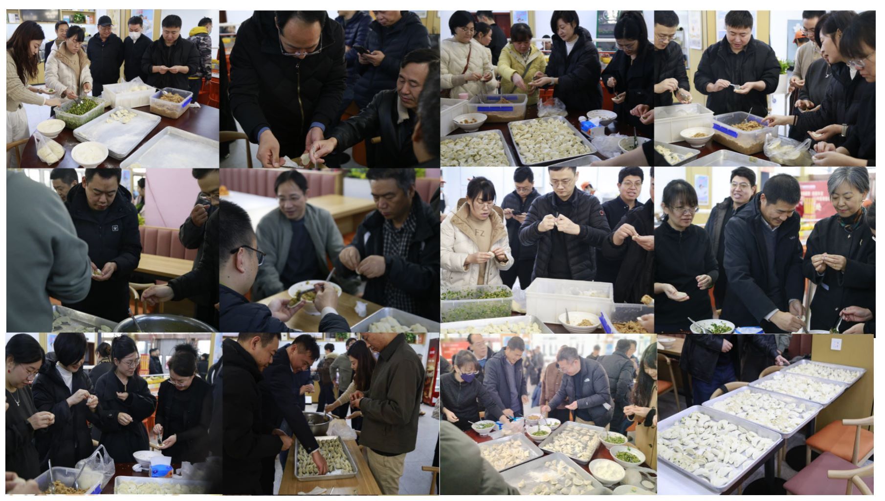 隨后,活動(dòng)進(jìn)入“聚力協(xié)作?手作團(tuán)圓”包餃子環(huán)節(jié)。教職工們熱情高漲,紛紛圍聚在操作臺(tái)旁,分工協(xié)作、各展所長(zhǎng),揉面、搟皮、包餡、捏邊,動(dòng)作嫻熟,配合默契。大家一邊交流著包餃子的技巧與心得,一邊暢談工作與生活,現(xiàn)場(chǎng)歡聲笑語(yǔ)不斷。通過(guò)親手勞作與緊密協(xié)作,老師們不僅體驗(yàn)了傳統(tǒng)美食制作的樂(lè)趣,更在輕松愉快的氛圍中增進(jìn)了了解,深化了同事情誼,讓冬日的餐廳充滿(mǎn)了暖意。