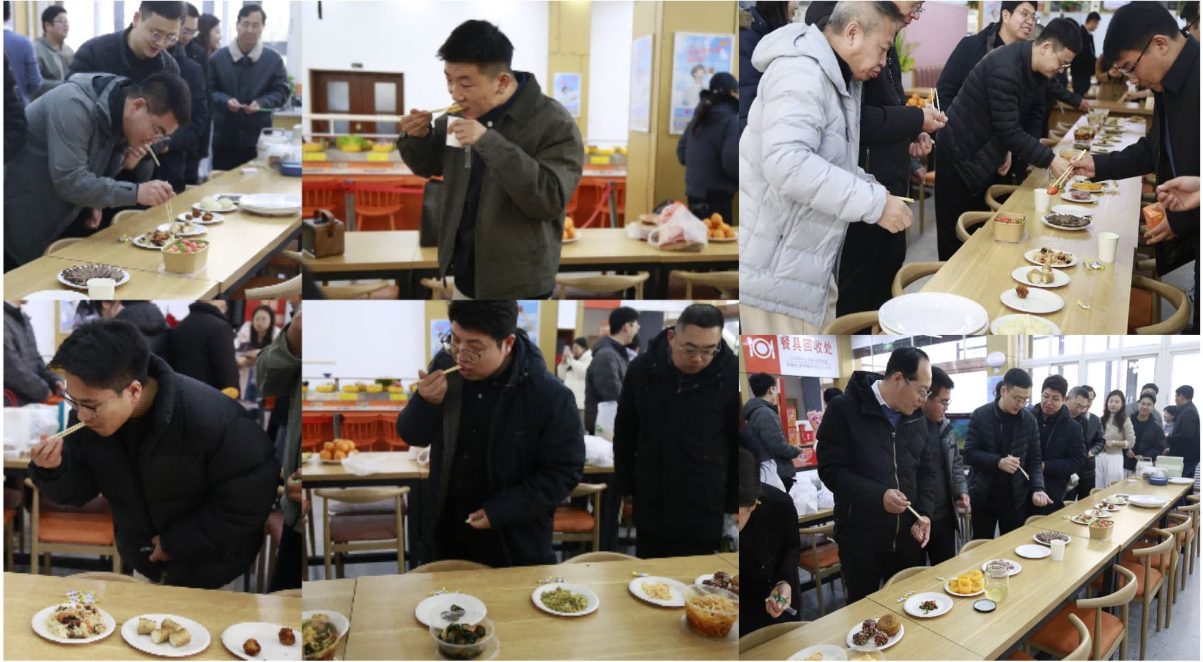 當(dāng)熱氣騰騰的餃子陸續(xù)出鍋,搭配著老師們帶來(lái)的各色美味,一場(chǎng)豐盛的“百家宴”正式開(kāi)席。大家圍坐一堂,共享親手包制的勞動(dòng)成果,品鑒各具特色的百家風(fēng)味。除了舌尖上的盛宴,活動(dòng)現(xiàn)場(chǎng)特別設(shè)置的“幸運(yùn)餃子獎(jiǎng)”更添驚喜。最終,這份幸運(yùn)由帶來(lái)“氣泡雙脆”與“藍(lán)莓熔巖雪山”兩道佳肴的賈慧老師摘得。同時(shí),工會(huì)還專(zhuān)門(mén)為14位監(jiān)考老師預(yù)留了冬至水餃。驚喜與歡樂(lè)持續(xù)升溫,進(jìn)一步濃厚了節(jié)日氛圍。