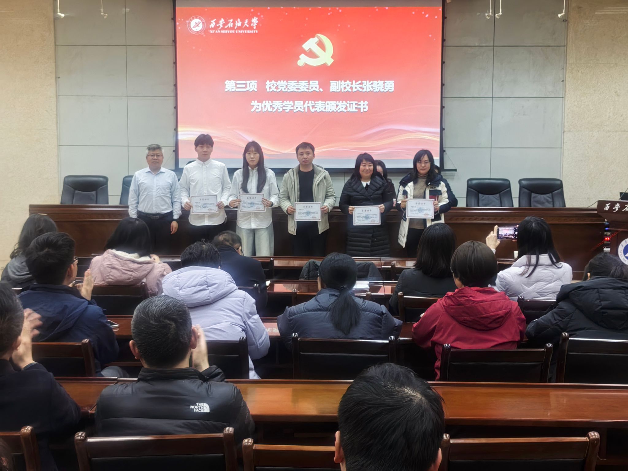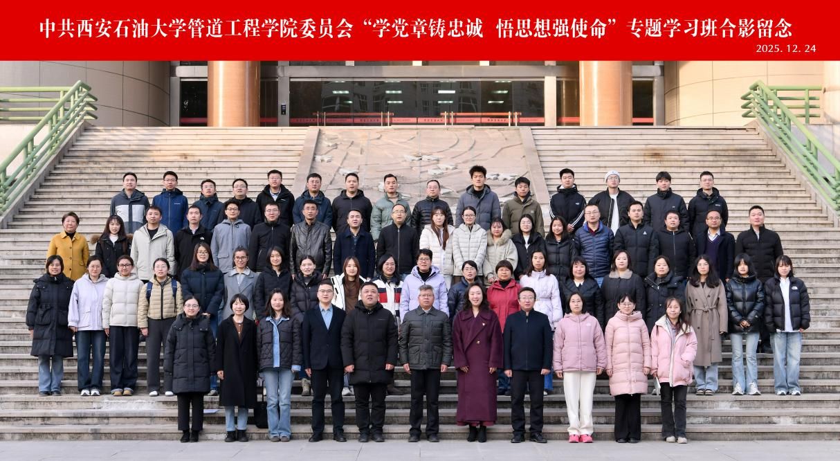 2025年12月24日下午,管道工程學(xué)院黨委在雁塔校區(qū)西階第三會(huì)議室開展“學(xué)黨章鑄忠誠(chéng),悟思想強(qiáng)使命”專題學(xué)習(xí)班第四講暨結(jié)業(yè)儀式。校黨委委員、副校長(zhǎng)張驍勇出席并作第四講專題報(bào)告,學(xué)院班子全體成員、全體教工黨員、研究生黨員代表70人參加儀式。儀式由學(xué)院黨委副書記高亮主持。